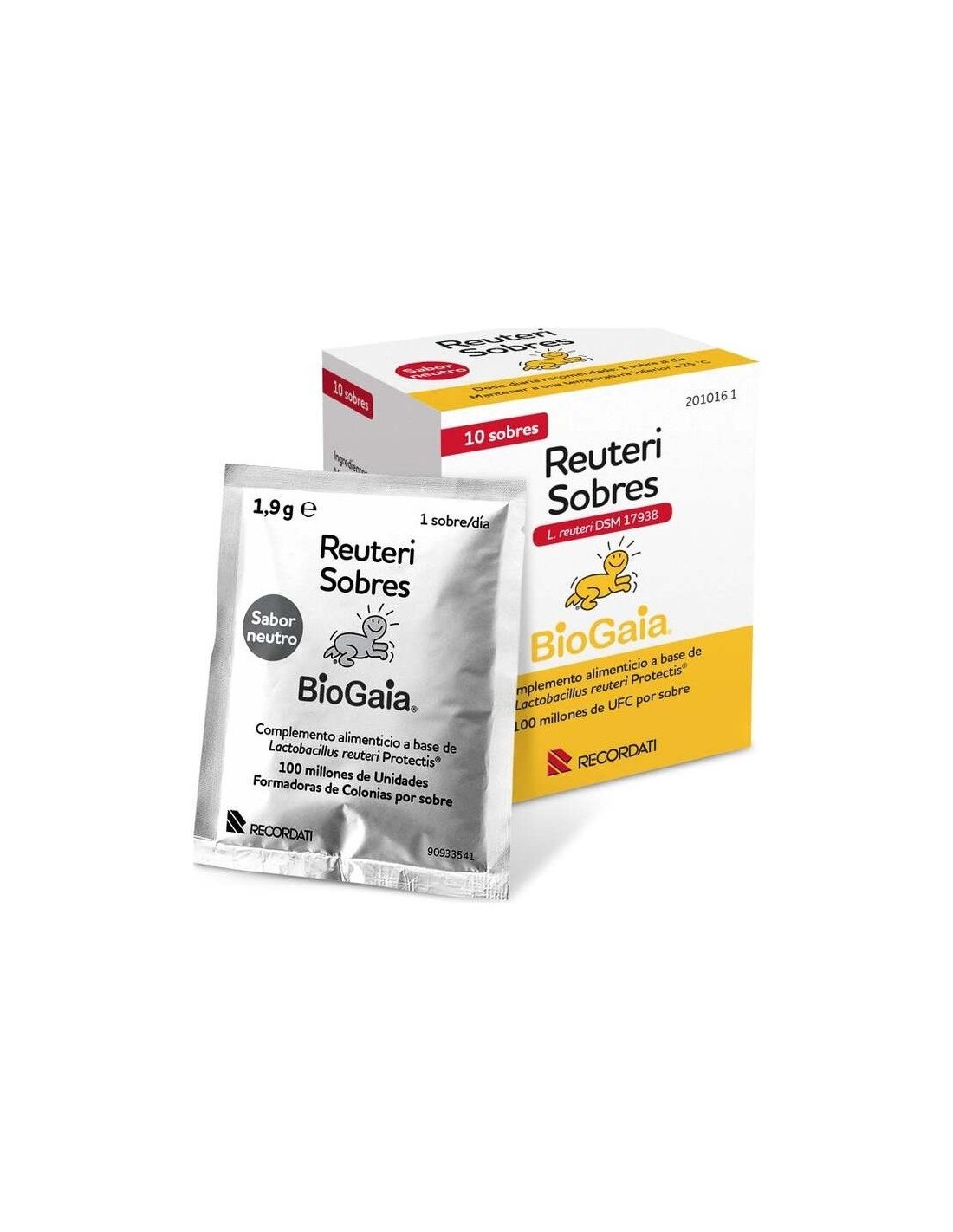 Maltodextrina resistente (estabilizador), Lactobacillus reuteri Protectis® DSM 17938.\ \ *100 millones de UFC por sobre