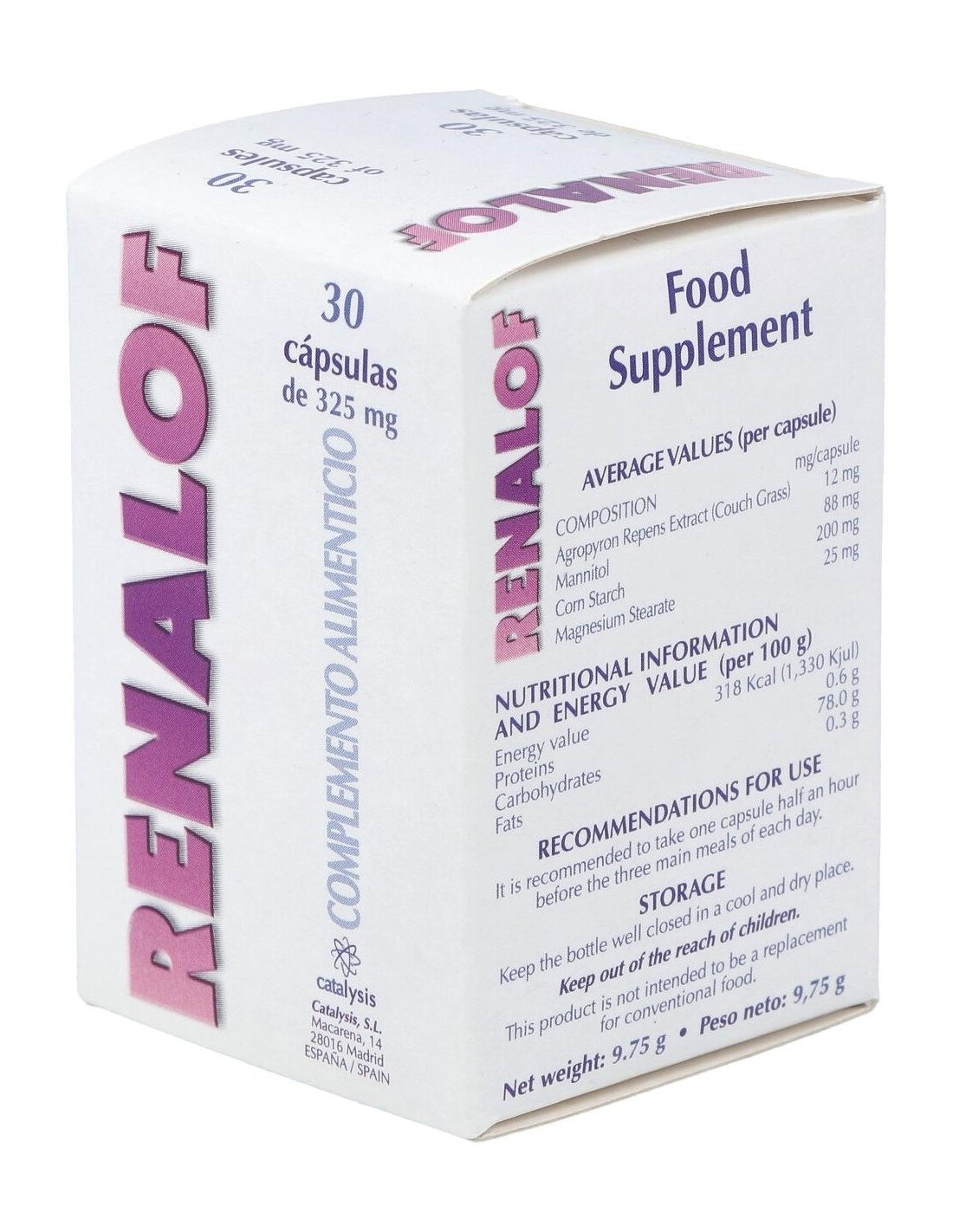 Renalof 30Cap. de Catalysis es un suplemento dirigido a personas que buscan apoyar la función renal, formulado con ingredientes que contribuyen al mantenimiento saludable del sistema urinario.