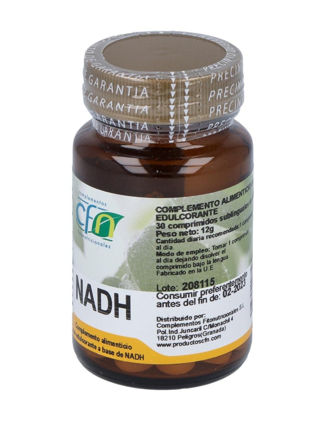 Composición por comprimido:10 mg de NADH (5-nicotinamida adenina dinucleótido). Modo de empleo:Tomar de 5 a 15 mg de NADH al día, especialmente 1/2 horas antes del desayuno o de las principales comidas. Presentación:Bote de 30 comprimidos sublinguales.