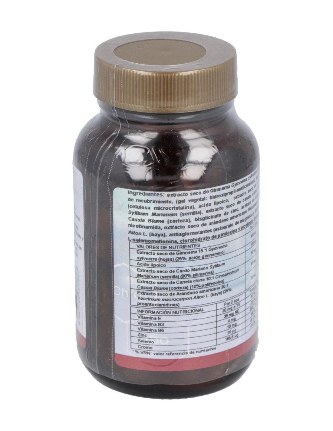 Este complemento alimenticio resulta idoneo para tratar la diabetes mellitus insulinodependiente y no insulinodependiente, la diabetes mellitus secundaria a pancreopatías y los disbalances glucémicos gracias a la capacidad de sus ingredientes natural para mantener unos niveles de glucosa saludables en sangre. Composición por cápsula: