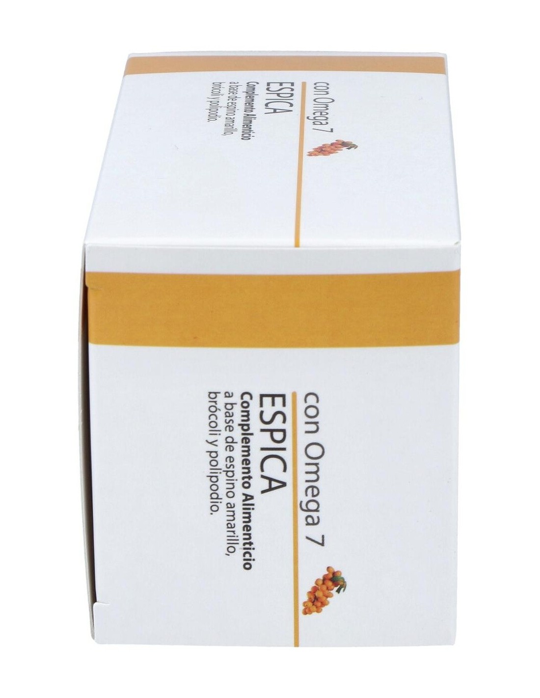 Complemento alimenticio elaborado a base de extractos naturales como Espino amarillo, Hippophae rhamnoides (fruto y semillas) con un 11% Omega 7, Brócoli Brassica oleracea, Polipodio Polypodium leucotomos (raíz) y otros excipientes.La rica composición tiene efecto regenerador, antiinflamatorio y antioxidante.