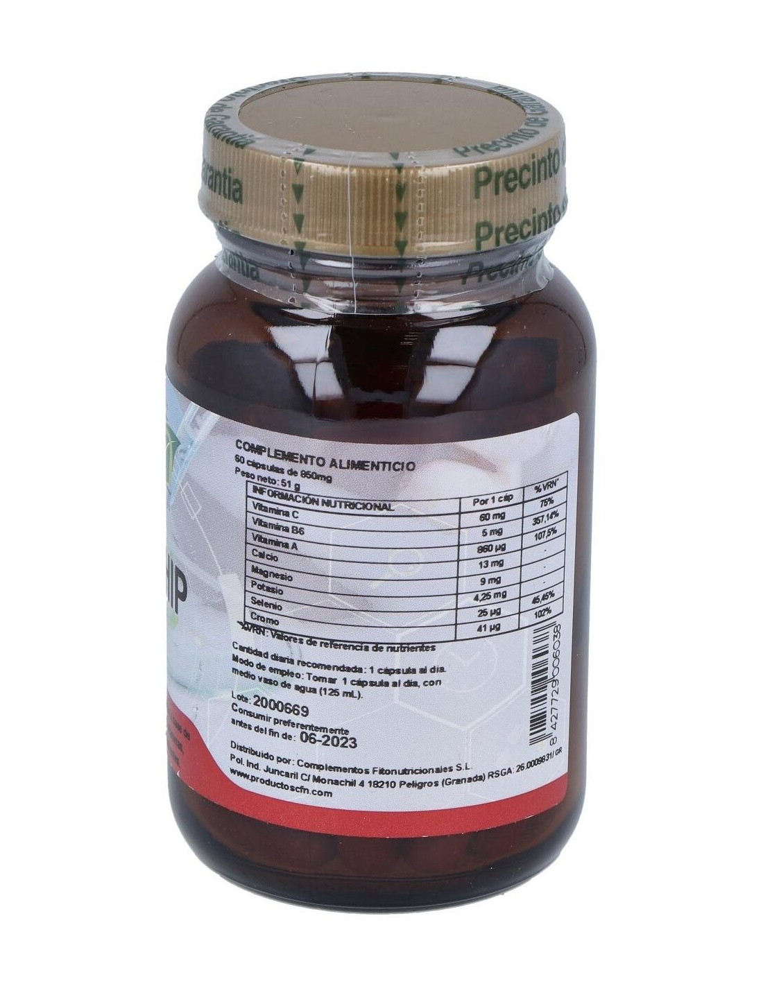 100 mcg de cromo picolinato (equivalente a 690 mcg de cromo elemental).