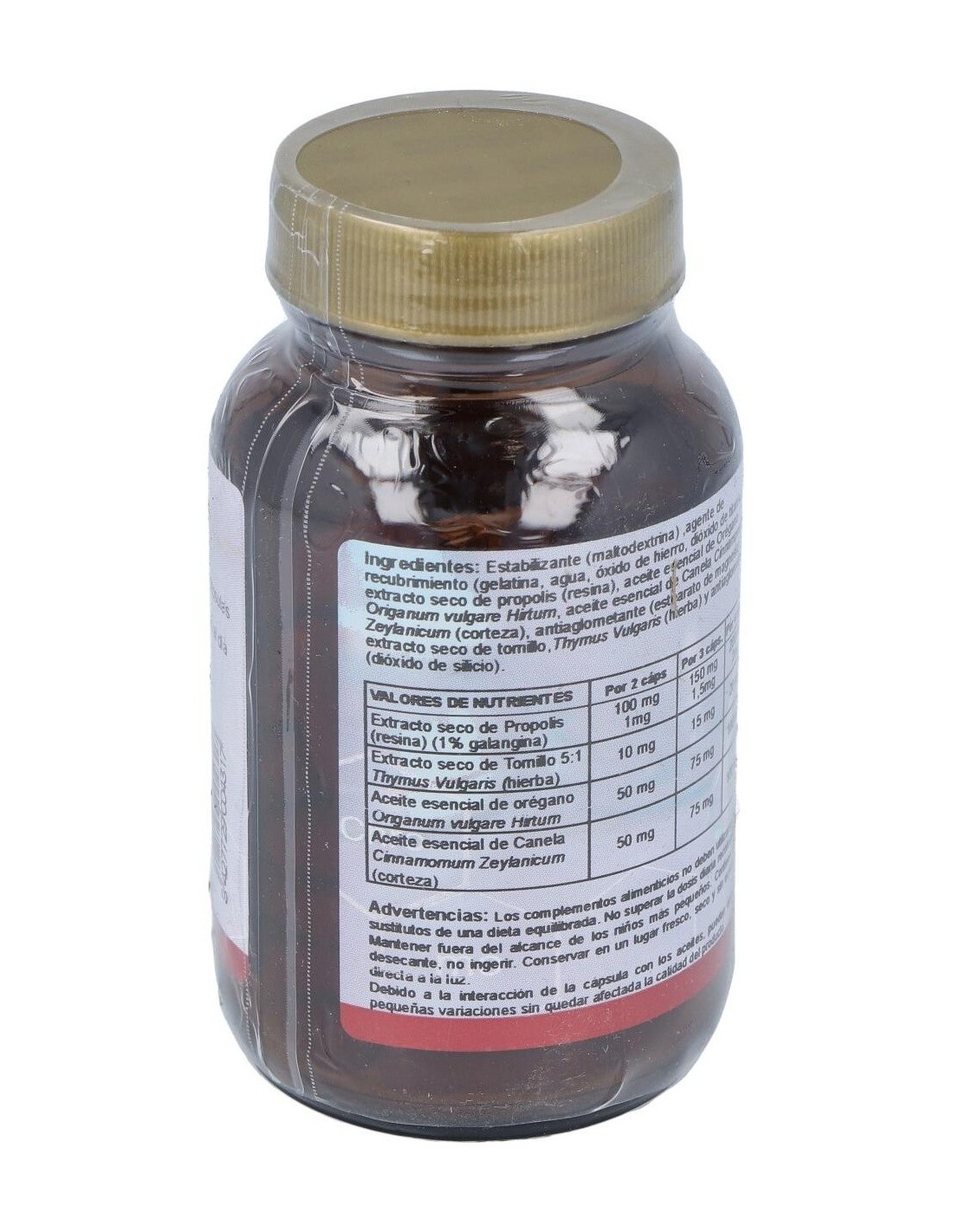 Este producto natural contiene aceites esenciales (orégano y canela) de la más alta calidad con extracto de propóleo. Este producto posee una marcada