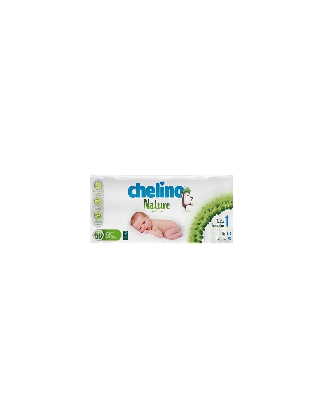 Pañales para bebé de Chelino Nature. Están fabricados con fibras naturales que son respetuosas con el medio ambiente, ya que proceden de bosques ecológicos. Esto los hace también respetuosos con el cuidado dermatológico de la piel sensible de los bebés. Incorporan en su diseño unas bandas que están recubiertas con una loción compuesta por elementos naturales como el aloe (una sustancia protectora y calmante de la piel), así como grosella negra o extracto de ambiaty. Se ajustan bien al cuerpo del bebé para no causar incomodidad ni irritaciones. Esta talla concreta está pensada para bebés de entre 1Kg y 3Kg. Tienen un diseño anatómico para una buena adaptación. Se mantienen protegidos y secos hasta 12 horas gracias a unas bandas blancas que dispersan la orina, además de a unas perlas superabsorbentes.