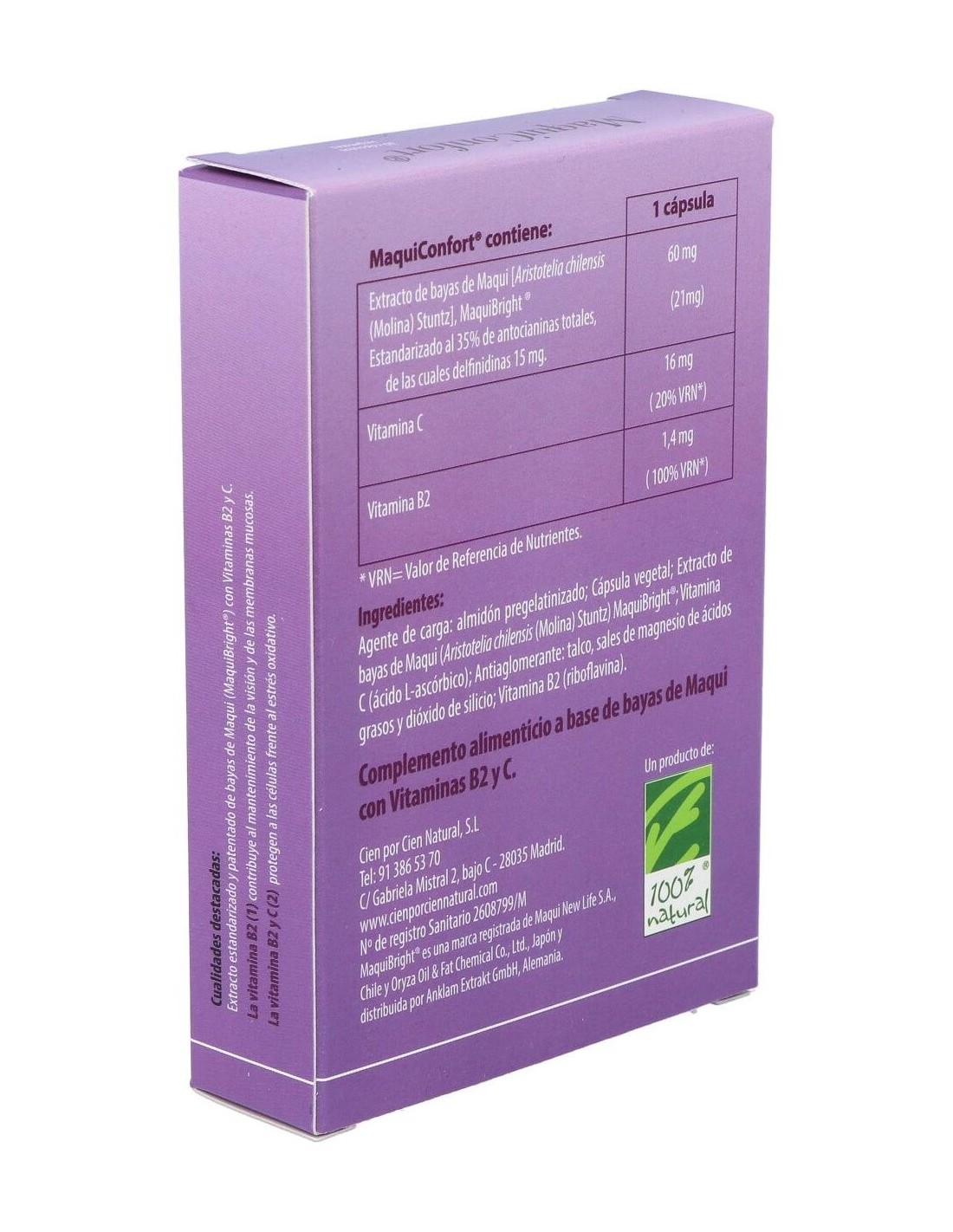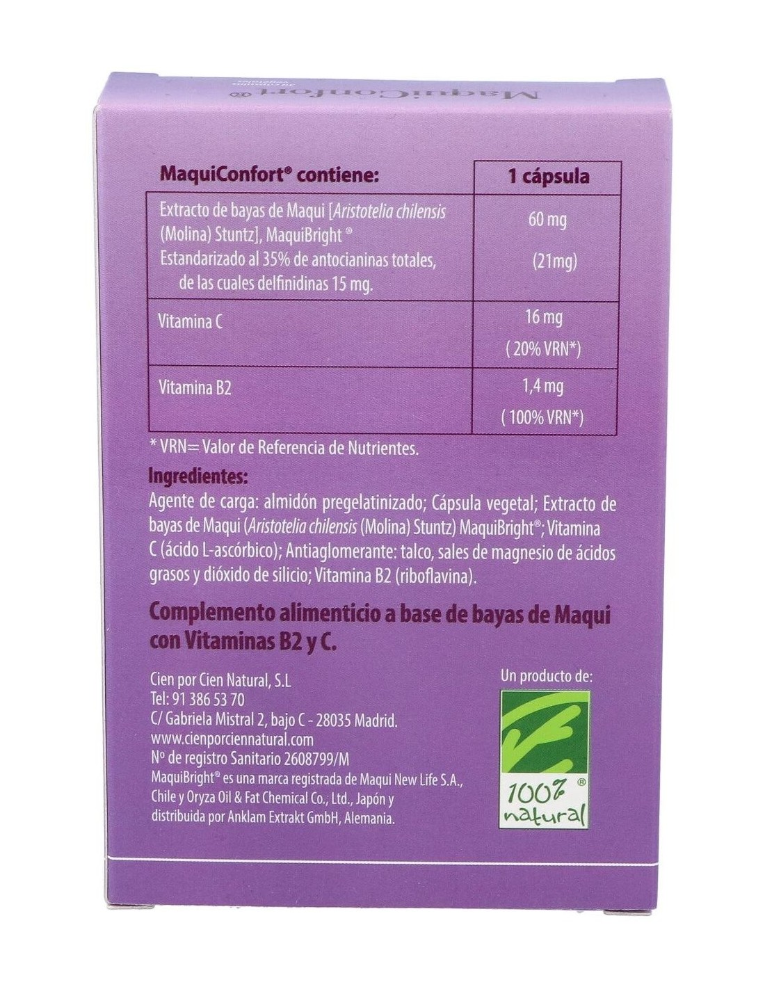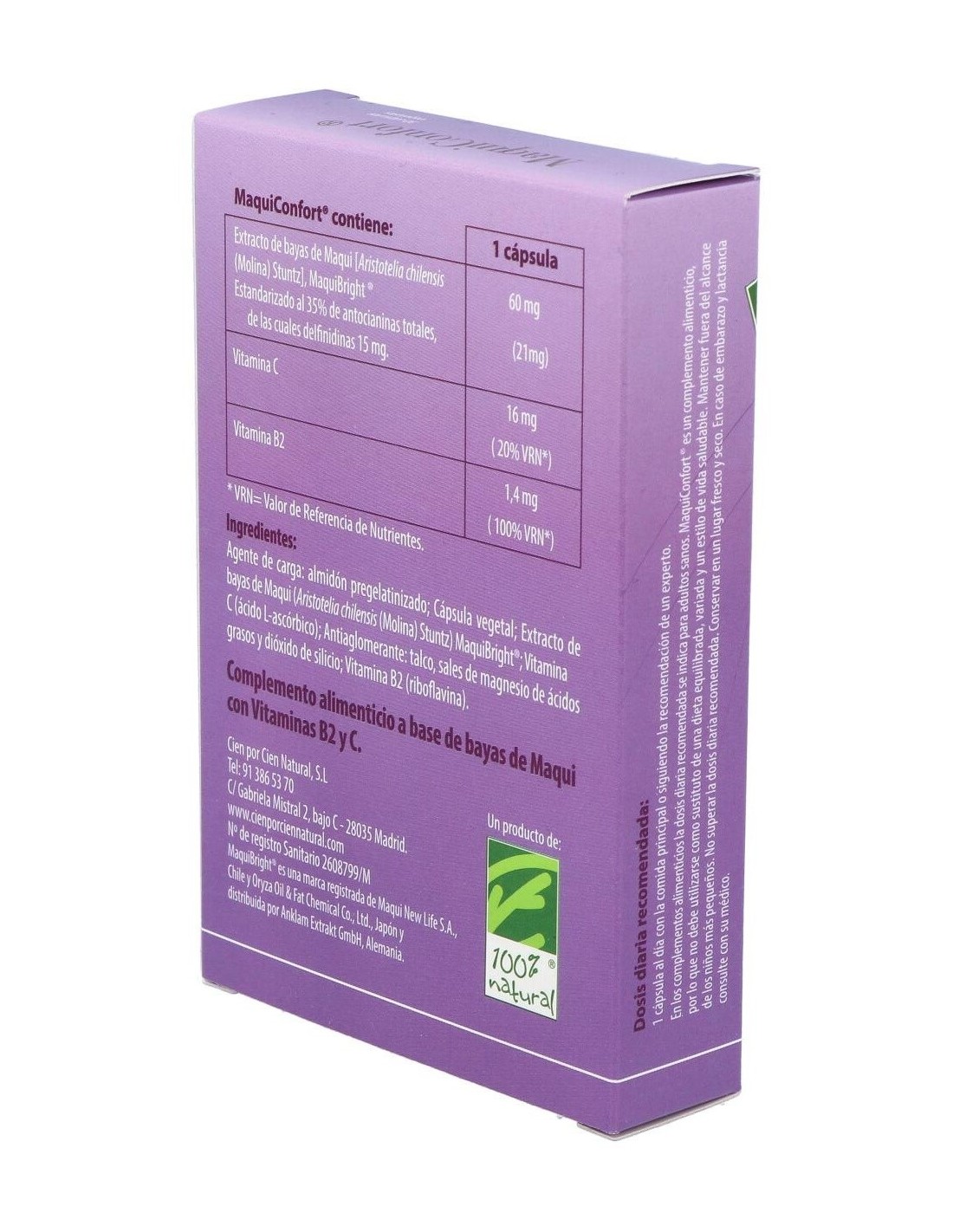 Maquiconfort 30Cap. de Cien Por Cien Natural está diseñado para personas que buscan un complemento natural que apoye su bienestar diario. Su formulación está orientada a quienes prefieren opciones basadas en ingredientes de origen natural para integrar en su rutina.