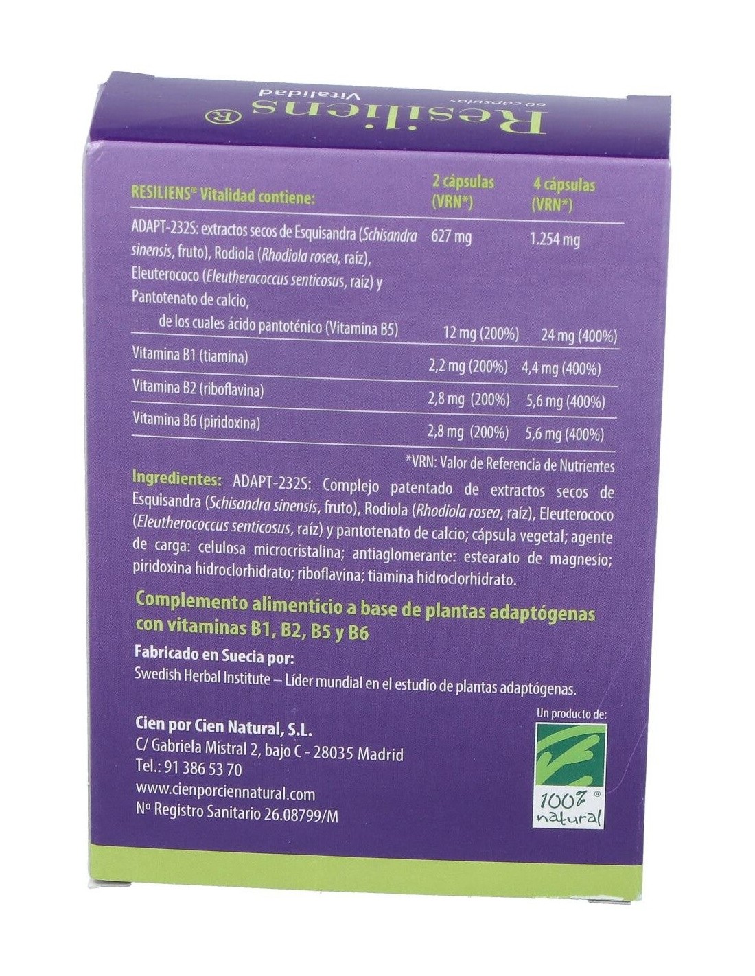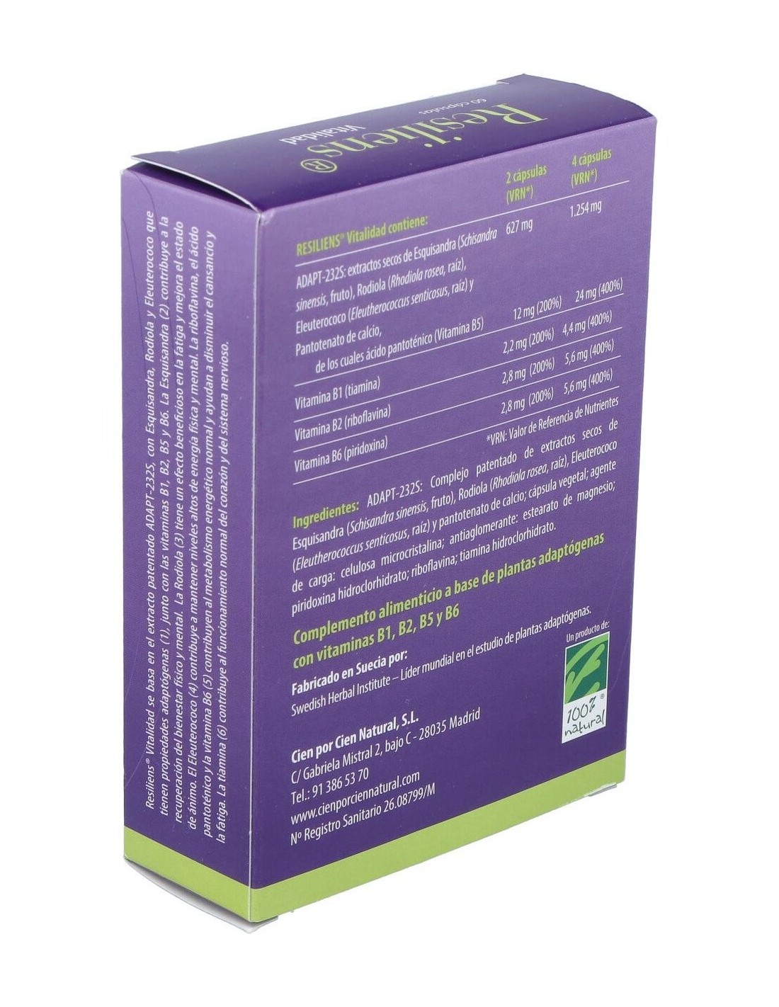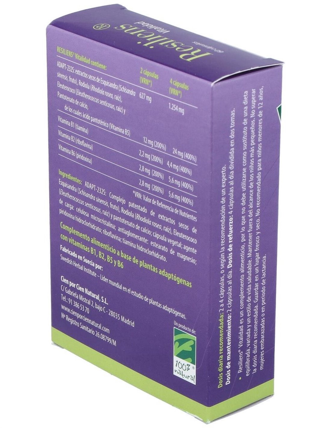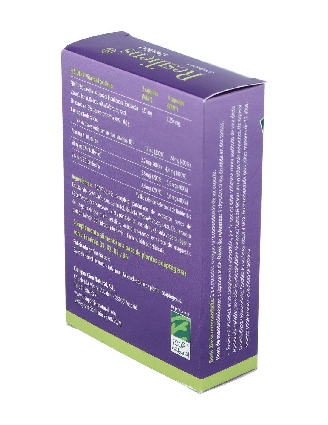 Resiliens Vitalidad 60Cap. de Cien Por Cien Natural ofrece una alternativa natural para quienes buscan complementar su bienestar cotidiano con un producto elaborado cuidadosamente.