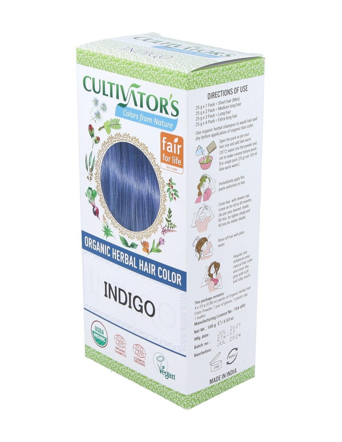 Coloración orgánica para el cabello con una cobertura del 100% de las canas, adecuada para mujeres y hombres. Las hierbas orgánicas contienen pigmentos colorantes naturales precursores y nutrientes para nutrir y acondicionar el pelo. Aumentan el brillo, la elasticidad y la suavidad del cabello. Producto vegano.