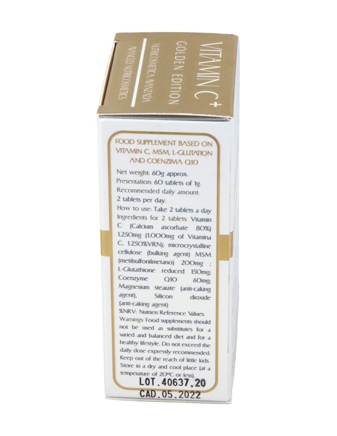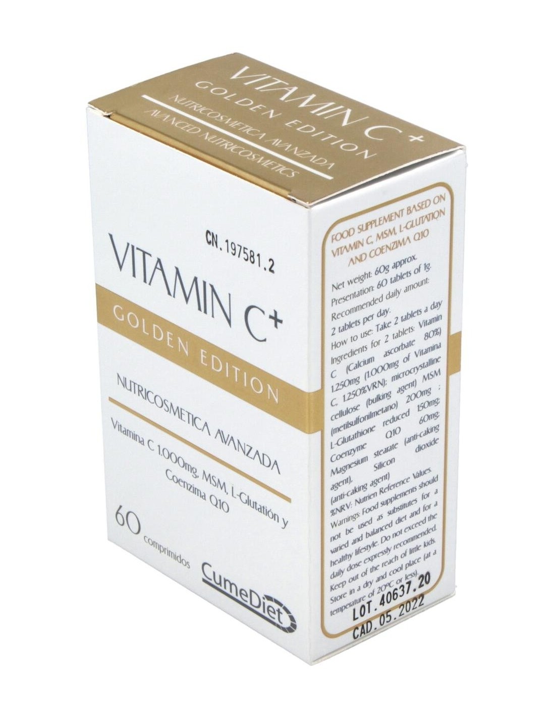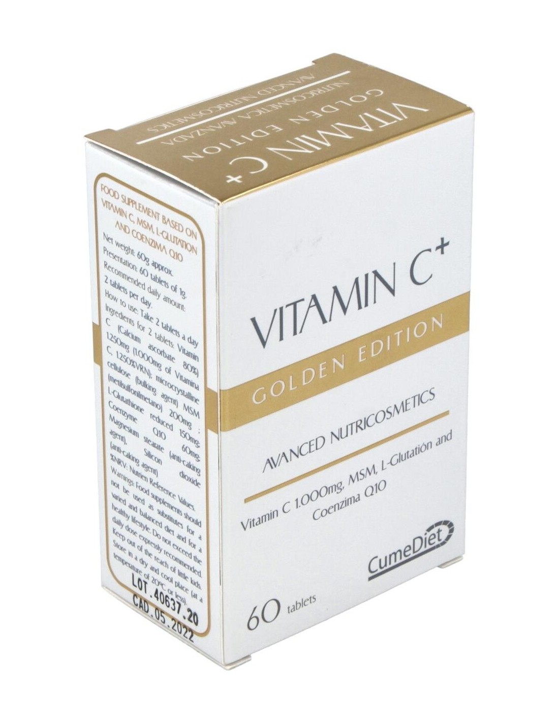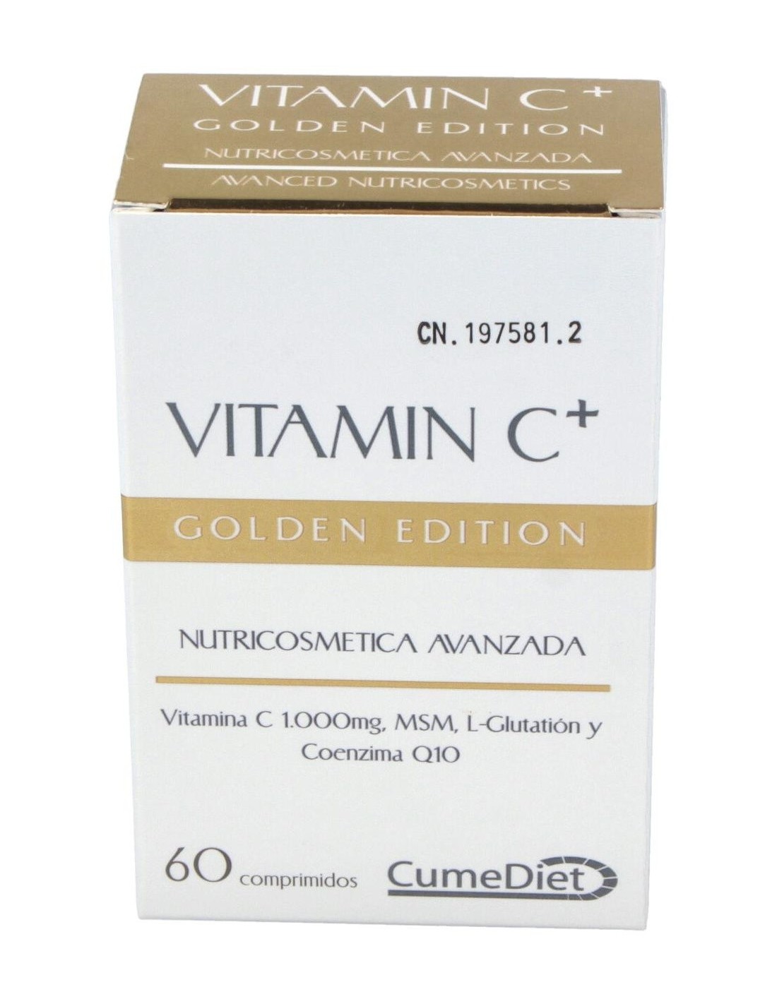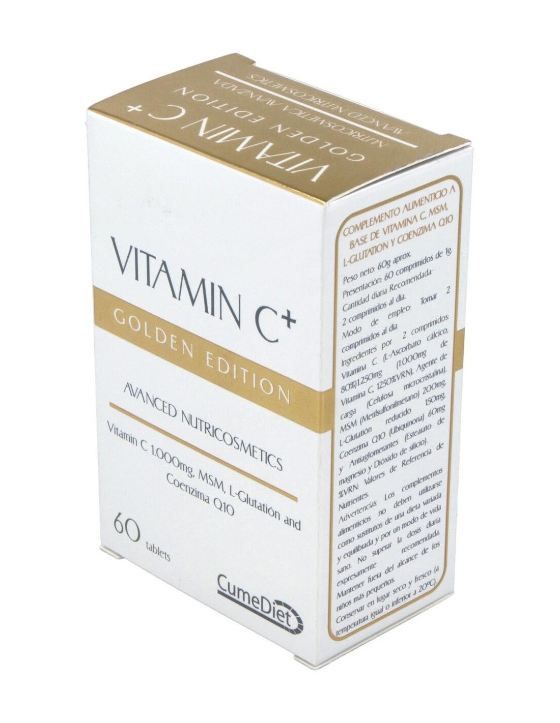 Cumediet Vitamina C+ Golden 60comp comprimidos antioxidantes a base de vitamina c, l glutatión y coenzima q 10. ayuda a prevenir los daños en la piel y a atacar los elementos nocivos.