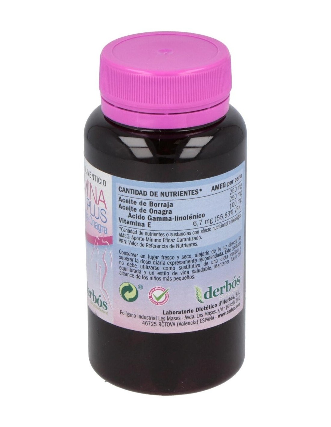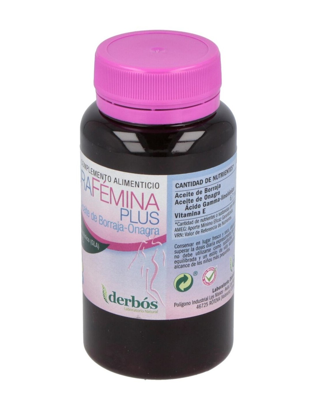 Derbós Borafémina Plus 120perlas es un complemento alimenticio en formato perlas que está enriquecido con aceite de borraja, de onagra y vitamina E. Ayuda a aliviar molestias derivadas de la menstruación o asociadas con la menopausia, como sofocos, hinchazón o malestar general.