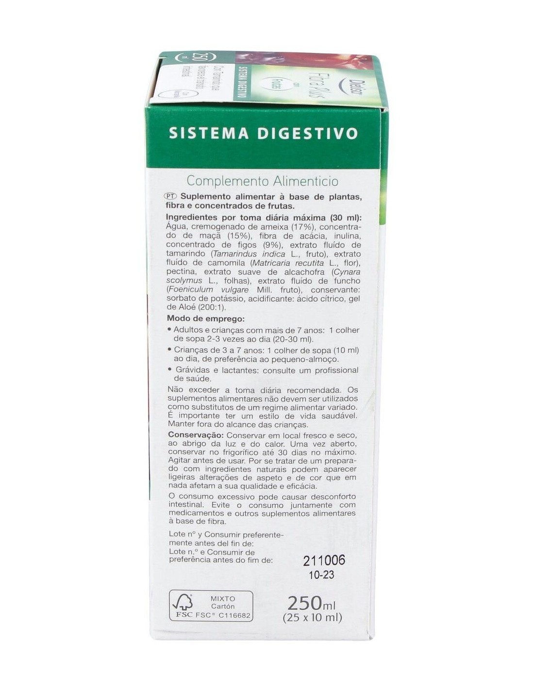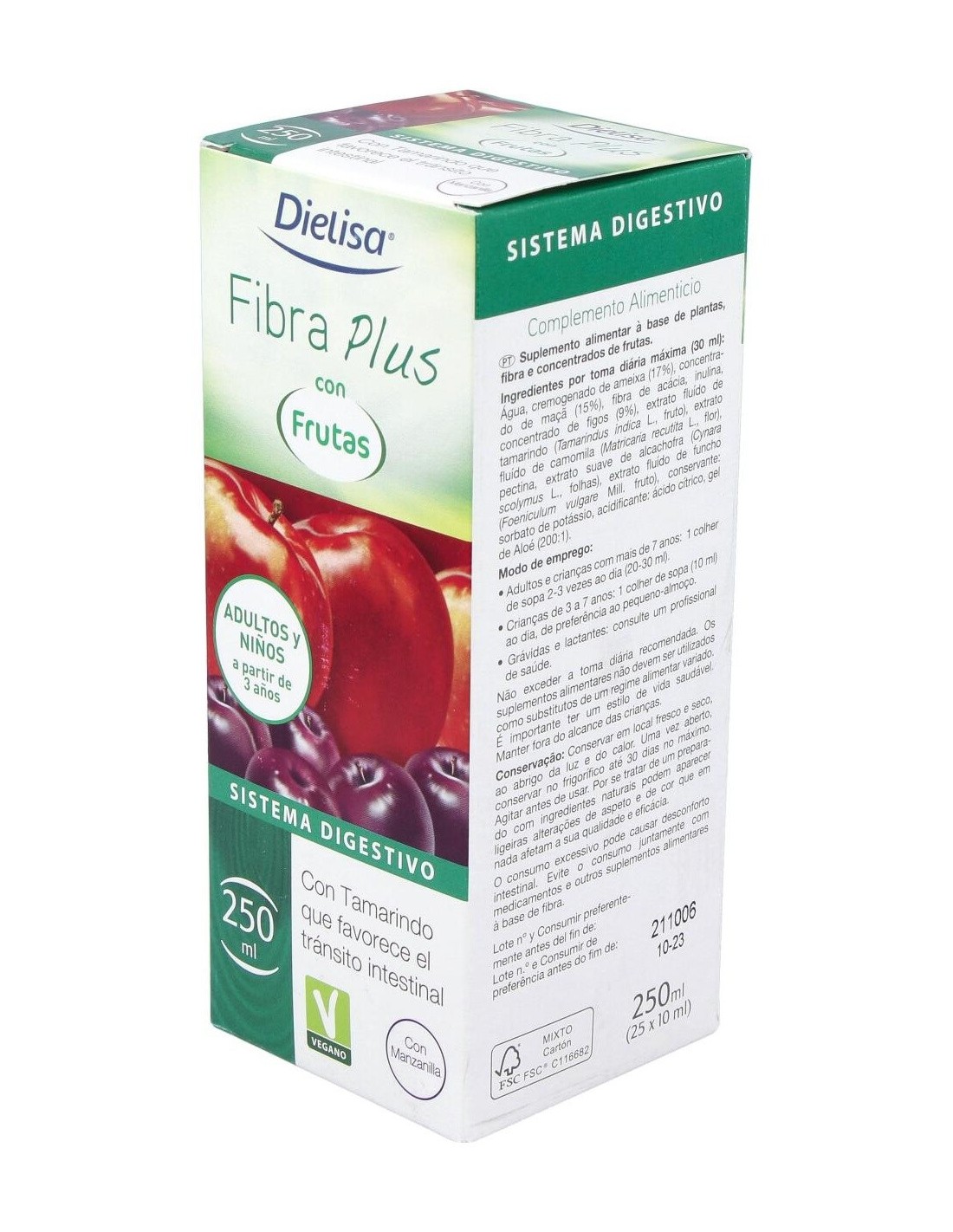Fibra Plus Con Frutas Envase 250 Ml (8-12 Días) de Dielisa® es una bebida diseñada para personas que buscan complementar su ingesta diaria de fibra de manera práctica y natural. Ideal para quienes desean apoyar su bienestar digestivo con una fórmula que integra ingredientes de origen frutal.
