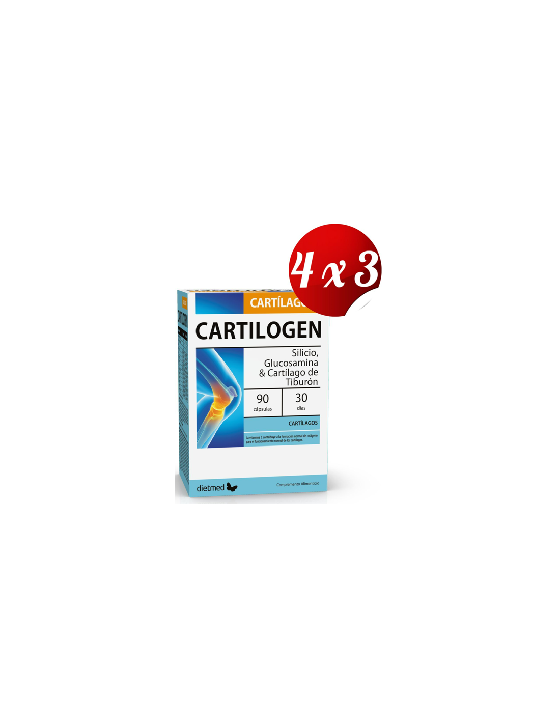 En conjunto, el Pack 4x3 uds Cartilogen 90Cap. de Dietmed ofrece una opción práctica para quienes desean apoyar el cuidado articular mediante un complemento alimenticio formulado para un uso continuado.