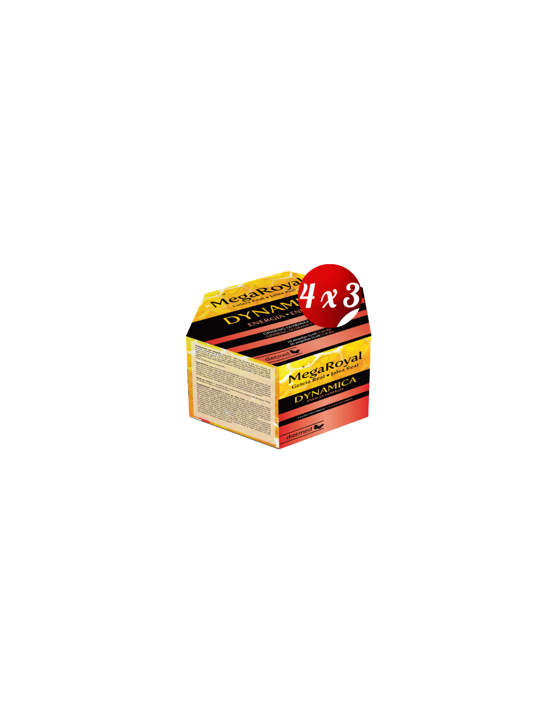 El Pack 4x3 uds Megaroyal Dynamica 20Amp. de Dietmed es un suplemento diseñado para personas que buscan apoyar su bienestar diario, ofreciendo una fórmula equilibrada con ingredientes seleccionados para contribuir a la salud general.