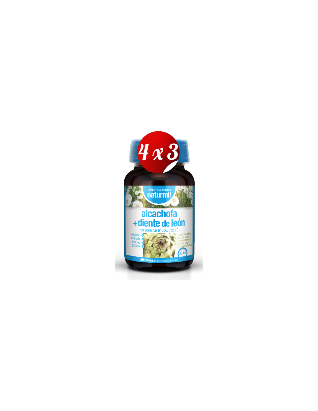 - Incluye 4 unidades de Alcachofa y 3 unidades de Diente de León, cada envase con 60 comprimidos, facilitando una suplementación continua.