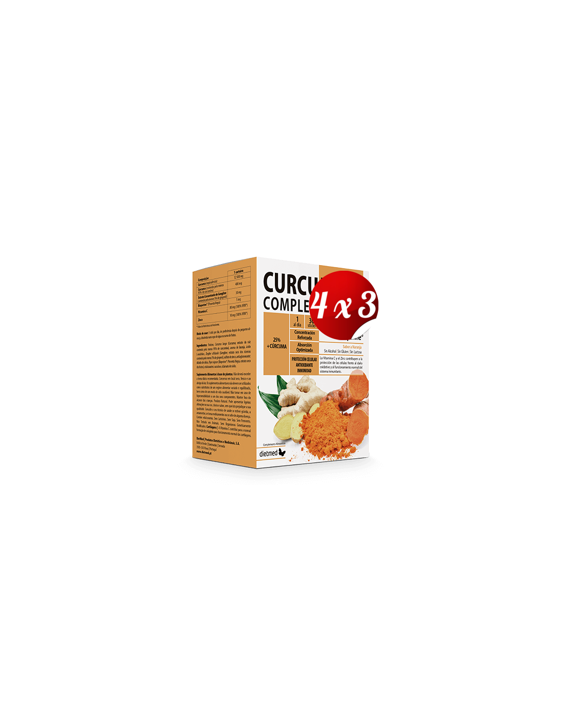El Pack 4x3 uds Curcumega Complex 30Sticks de Dietmed está diseñado para personas que buscan complementar su dieta con ingredientes naturales que apoyan el bienestar general. Este formato múltiple facilita la incorporación diaria de sus componentes en la rutina habitual.