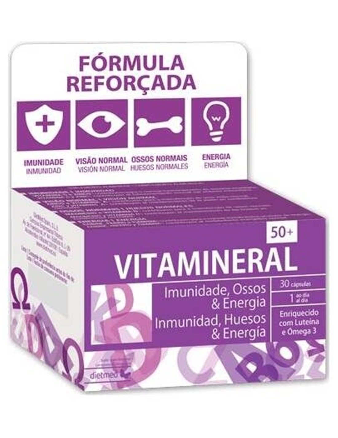 Vitamineral 50+ Gold 30Perlas de Dietmed es un suplemento diseñado para personas mayores de 50 años que buscan apoyar su bienestar diario mediante una fórmula equilibrada de vitaminas y minerales. Este producto está pensado para quienes desean complementar su dieta con nutrientes esenciales adaptados a sus necesidades específicas.