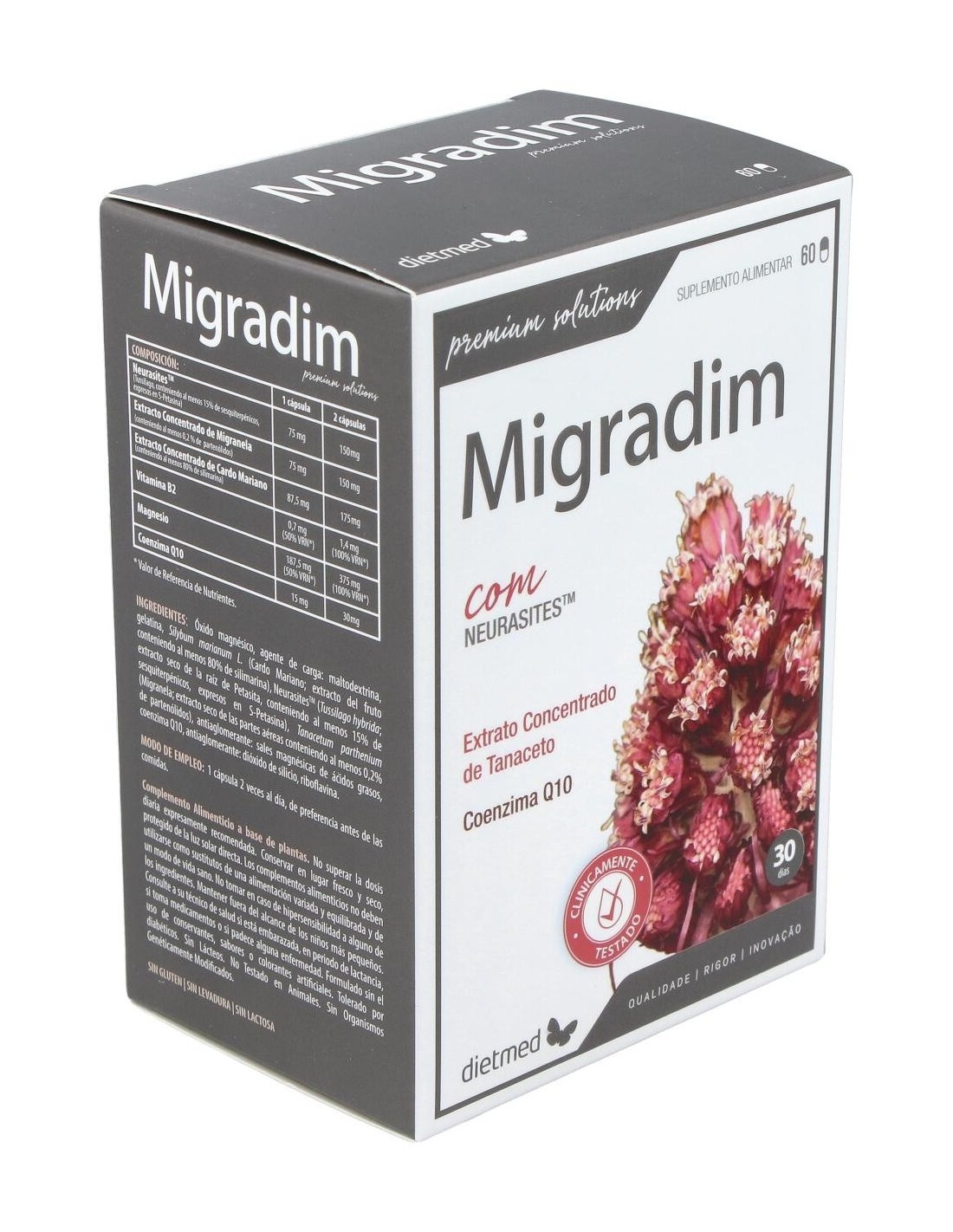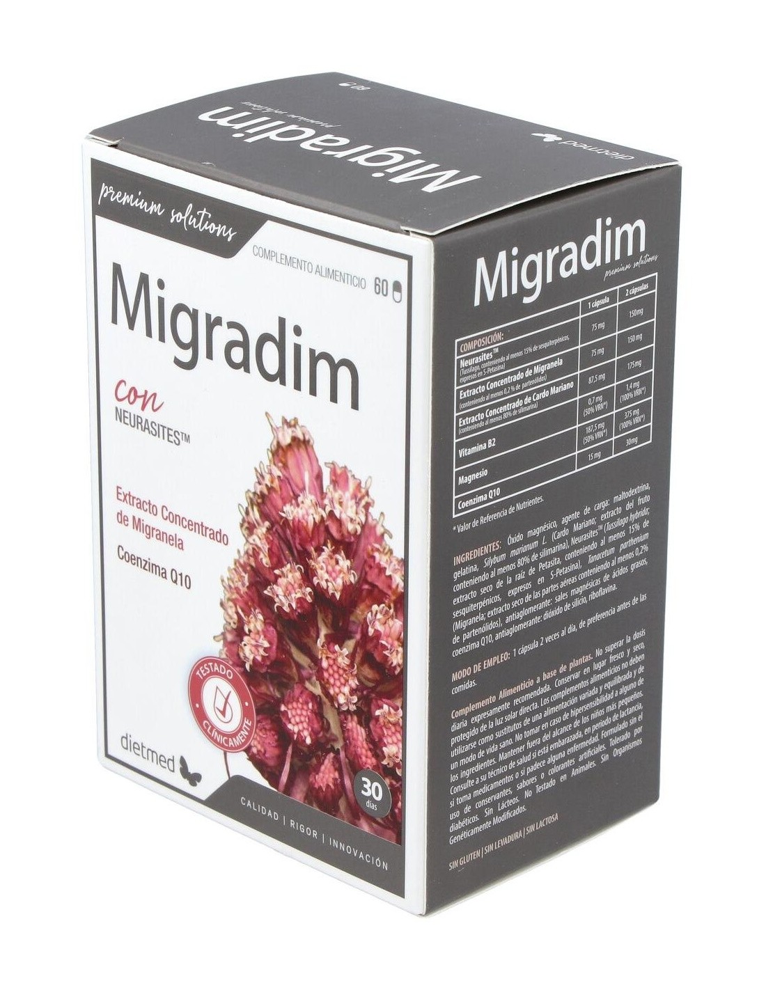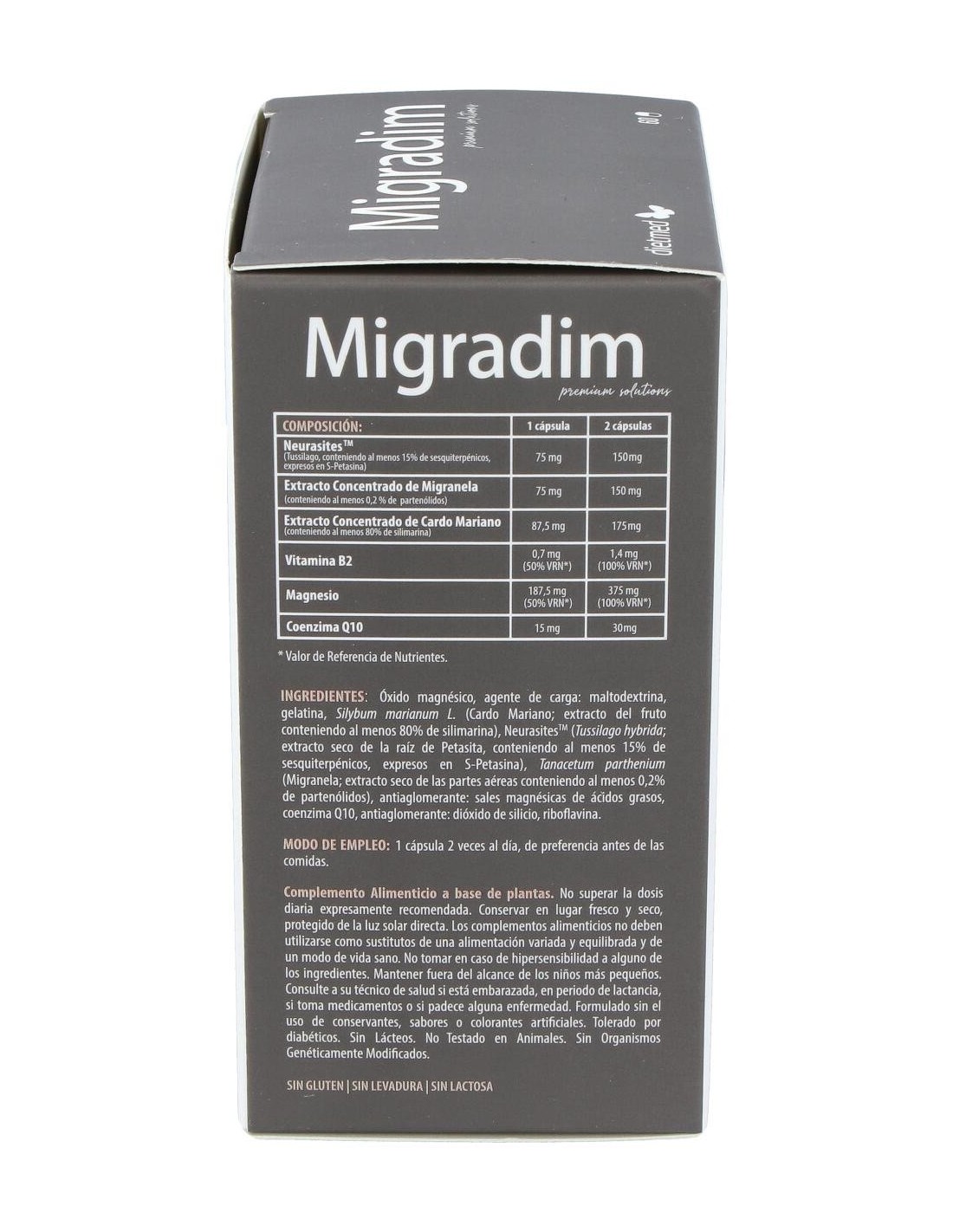 Las cápsulas de Migradim están elaboradas con excipientes que garantizan una adecuada absorción y conservación de sus ingredientes activos. Su presentación en envase de 60 unidades permite un suministro para un periodo prolongado, ideal para quienes buscan consistencia en su suplementación.