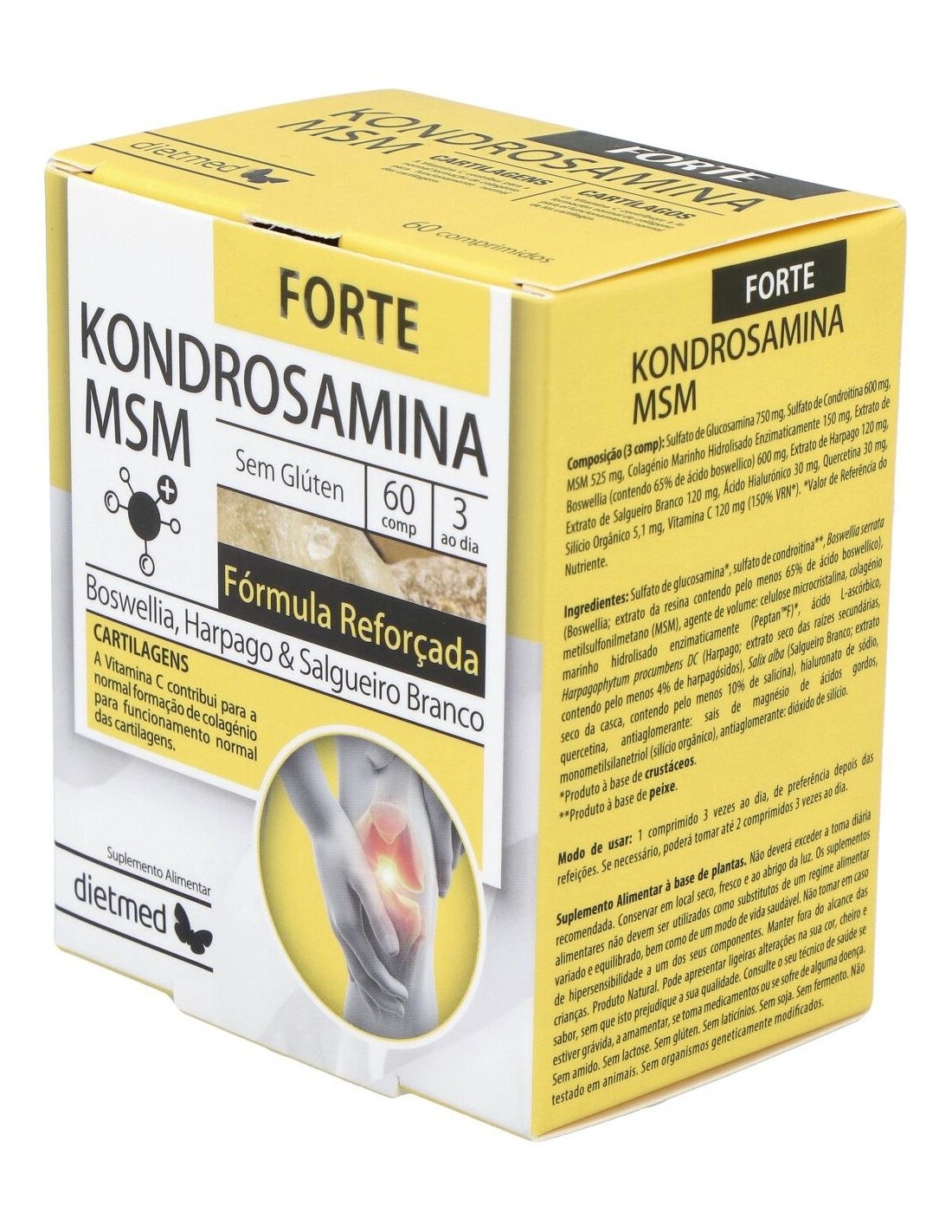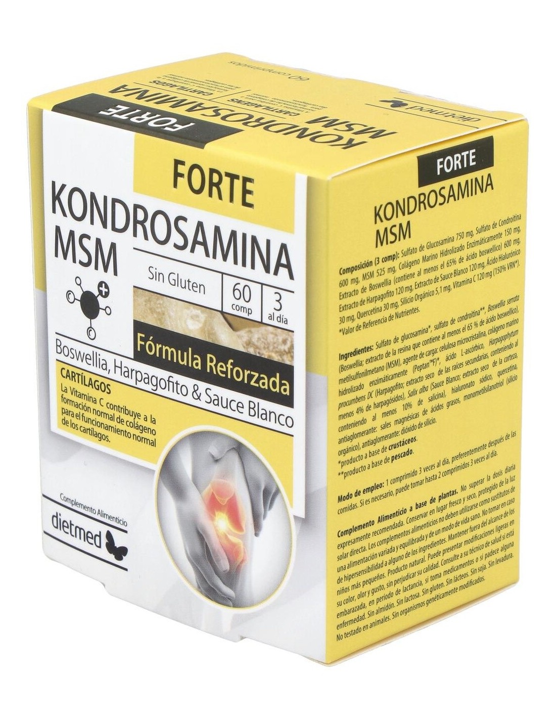 Kondrosamina Msm Forte 60Comp. de Dietmed es un complemento alimenticio diseñado para personas que buscan apoyar la salud articular dentro de un estilo de vida activo y equilibrado. Su formulación combina ingredientes seleccionados para contribuir al mantenimiento del bienestar en las articulaciones.