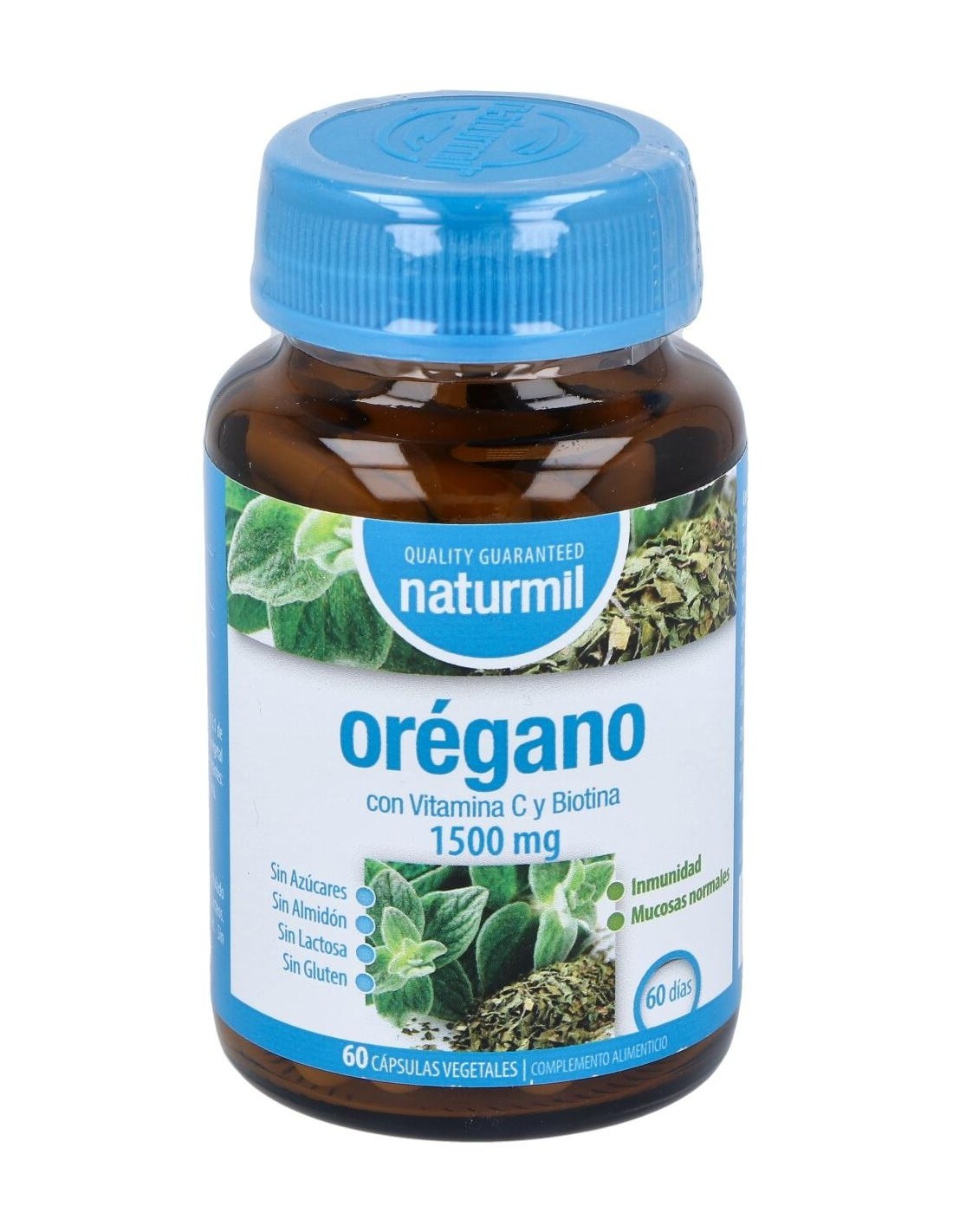 El Orégano es una planta medicinal y aromática propia de la región mediterránea, cuyas hojas contienen un aceite esencial muy aromático y de sabor punzante, rico en carvacrol y timol, que es el que le otorga sus propiedades medicinales.Orégano de Naturmil es un complemento alimenticio con indicaciones de buen uso como acción antimicrobiana: (candidiasis, micosis, infecciones intestinales etc), dispepsia hipo-secretora, meteorismo, espasmos gastrointestinales, diarrea, disquinesias hepatobiliares, colecistitis, bronquitis, asma, tos, enfisema, (afecciones broncopulmonares), amenorrea, dismenorrea y litiasis renal.Composición activa por cápsula: