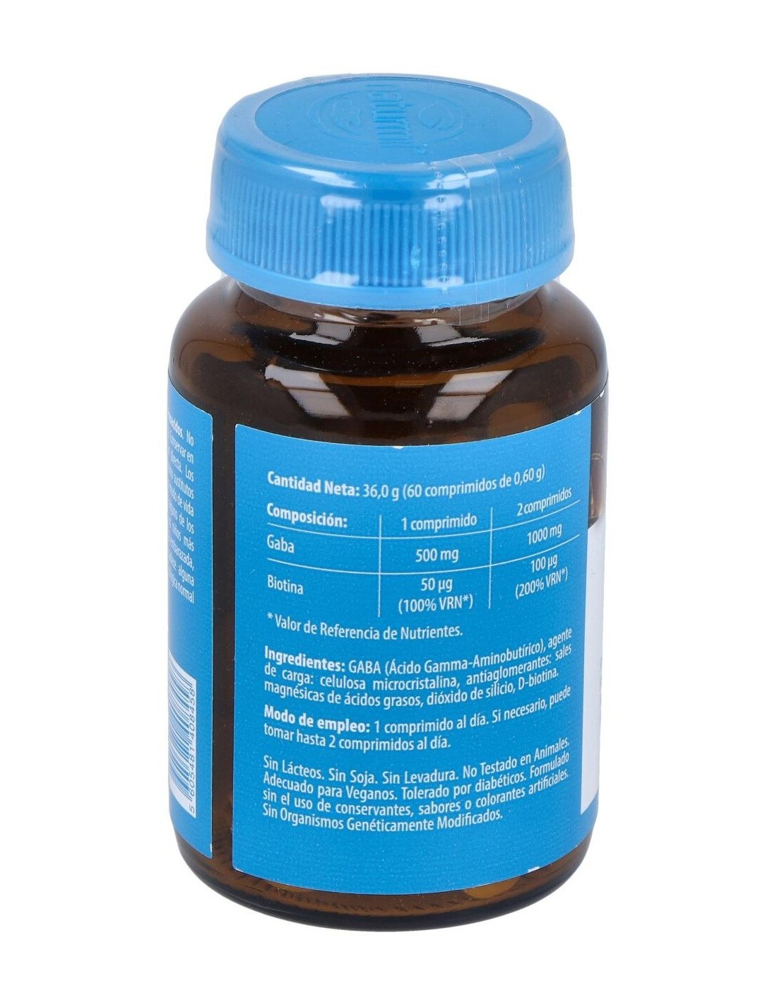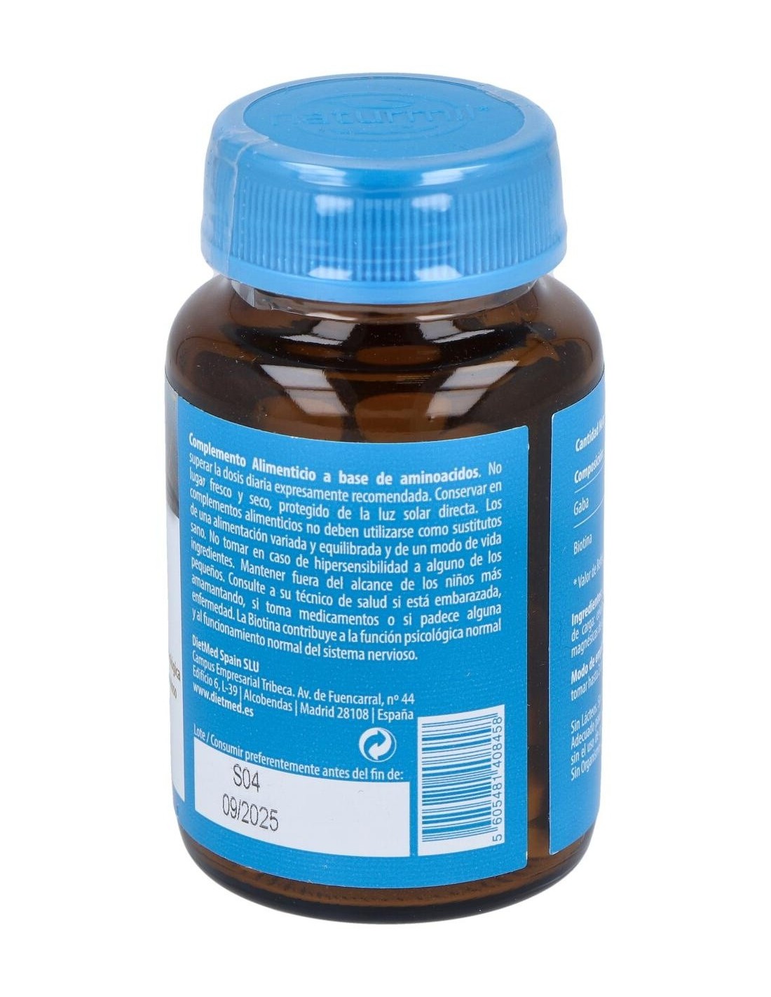 Ingredientes:GABA (Ácido Gama-Aminobutírico); Agente de carga: celulosa microcristalina; antiaglomerantes: sales magnésicas de ácidos grasos, dióxido de silicio; D-biotina.Modo de empleo:Tomar 1 cápsula al día. Si es necesario puede tomar hasta 2 cápsulas al día.Presentación:Envase de 60 cápsulas.Recomendaciones y advertencias:No contiene azúcares, almidón, lactosa ni gluten.