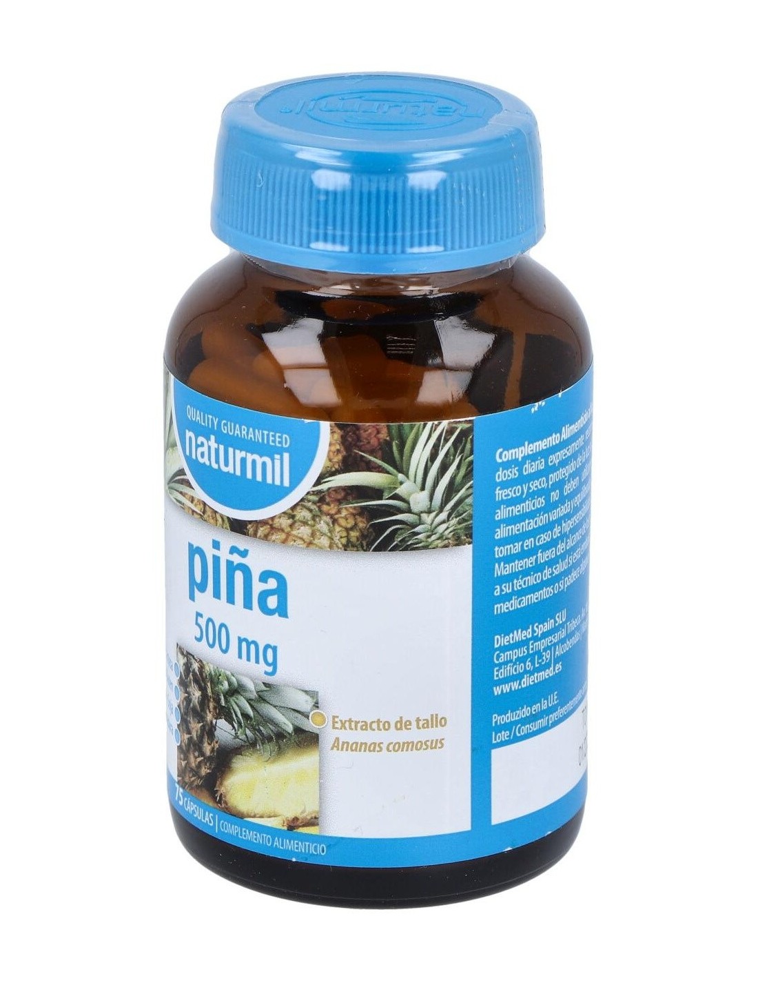La Piña 500Mg. 75Cap. de Dietmed es un suplemento alimenticio para personas que buscan apoyar la digestión y el bienestar general, formulado con extracto de piña que aporta bromelina natural.