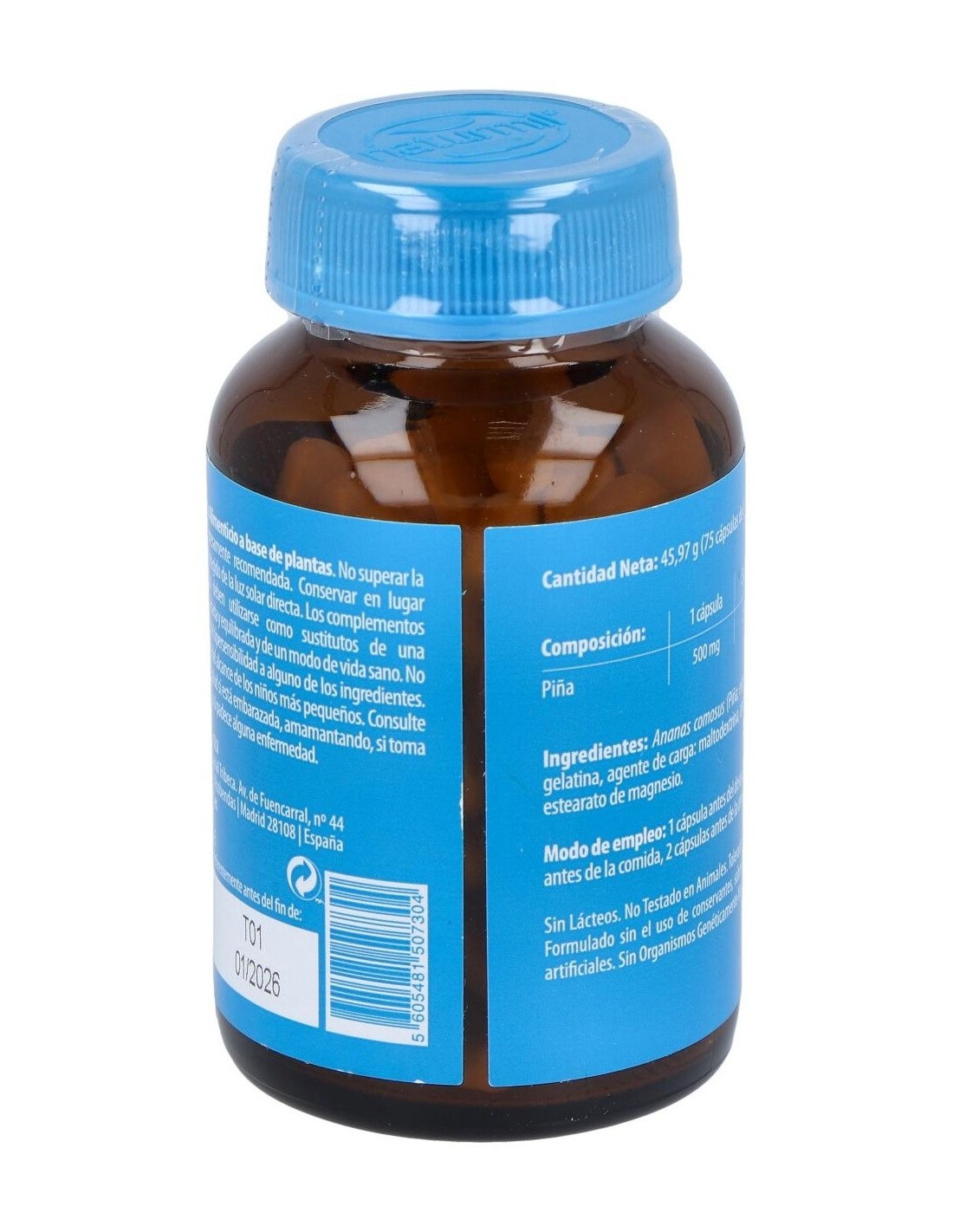 - Cada cápsula contiene 500 mg de extracto de piña, facilitando una ingesta controlada y constante.