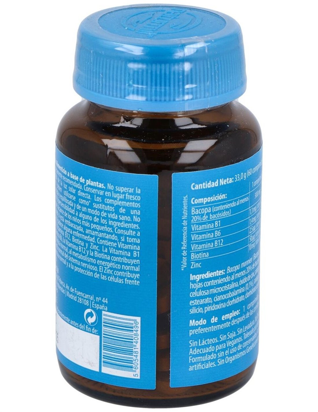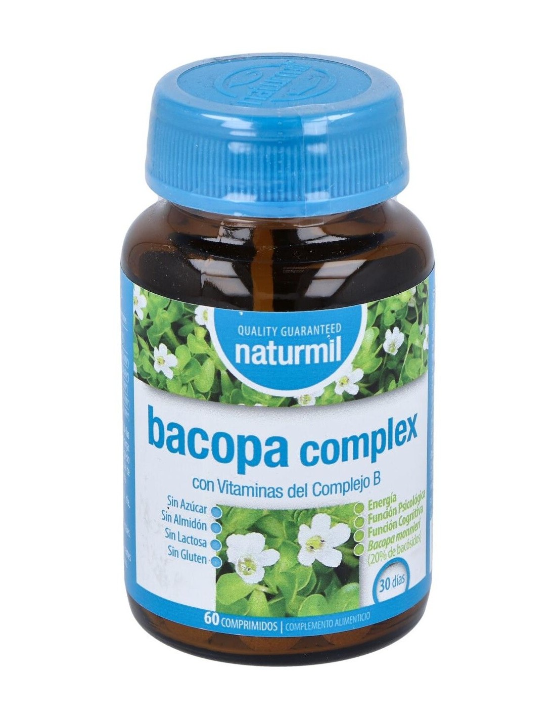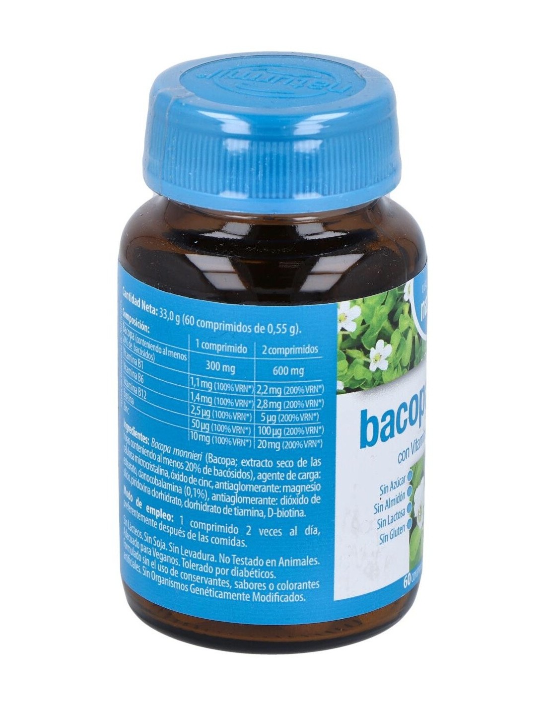 - Contiene 300 mg por comprimido de extracto estandarizado de Bacopa, que contribuye a mantener funciones cognitivas saludables.