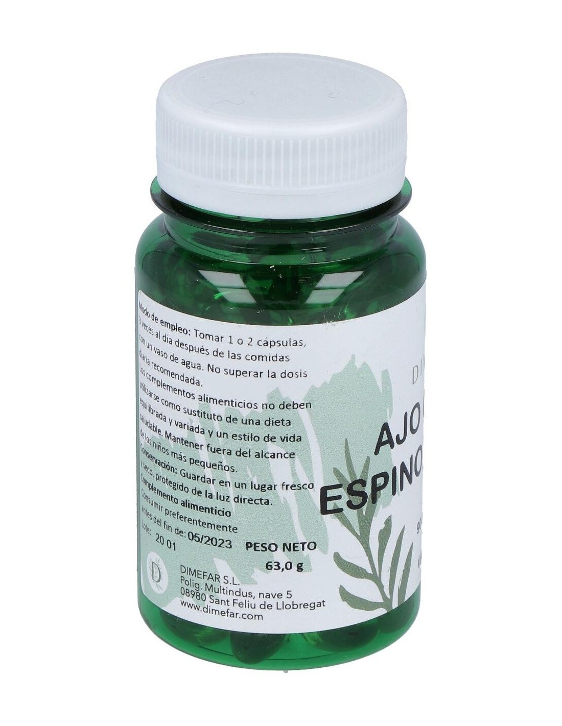 Ajo+Olivo+Espino 90Perlas de Dimefar es un suplemento diseñado para personas interesadas en complementar su dieta con ingredientes naturales. Está formulado para quienes buscan una opción que integre extractos de plantas reconocidas por su uso tradicional.