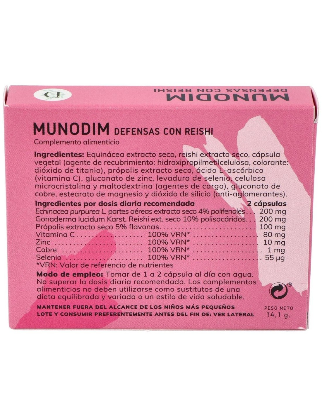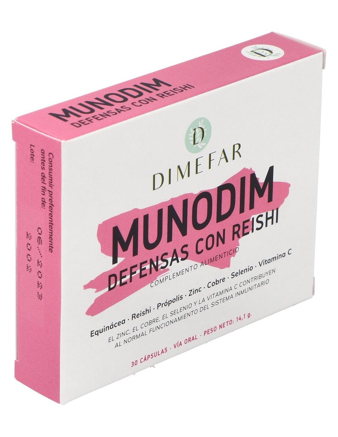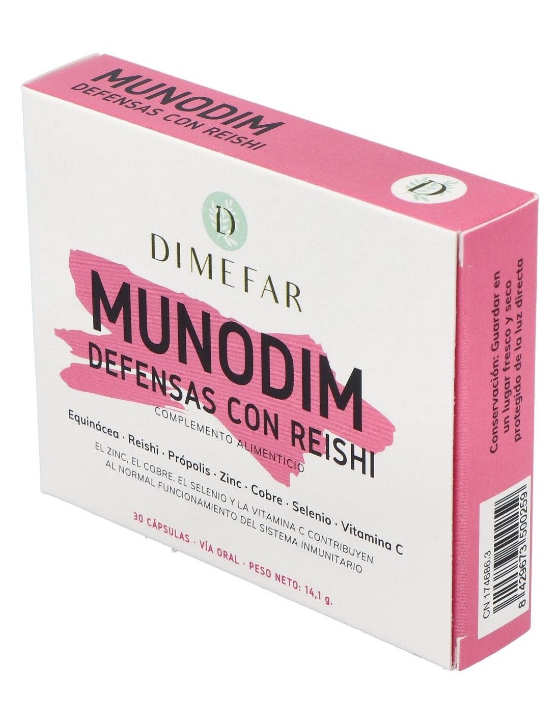 Dimefar Munodim 30Cáps es un complemento alimenticio elaborado con extractos valorados de equinácea, reishi y própolis y complementado con vitamina C, Zinc, Cobre y Selenio, combinación que contribuye a fortalecer las defensas y a mantener el sistema inmunitario en óptimo estado de salud. De esta manera, el organismo está más preparado para combatir las agresiones externes, virus y bacterias eficazmente.
