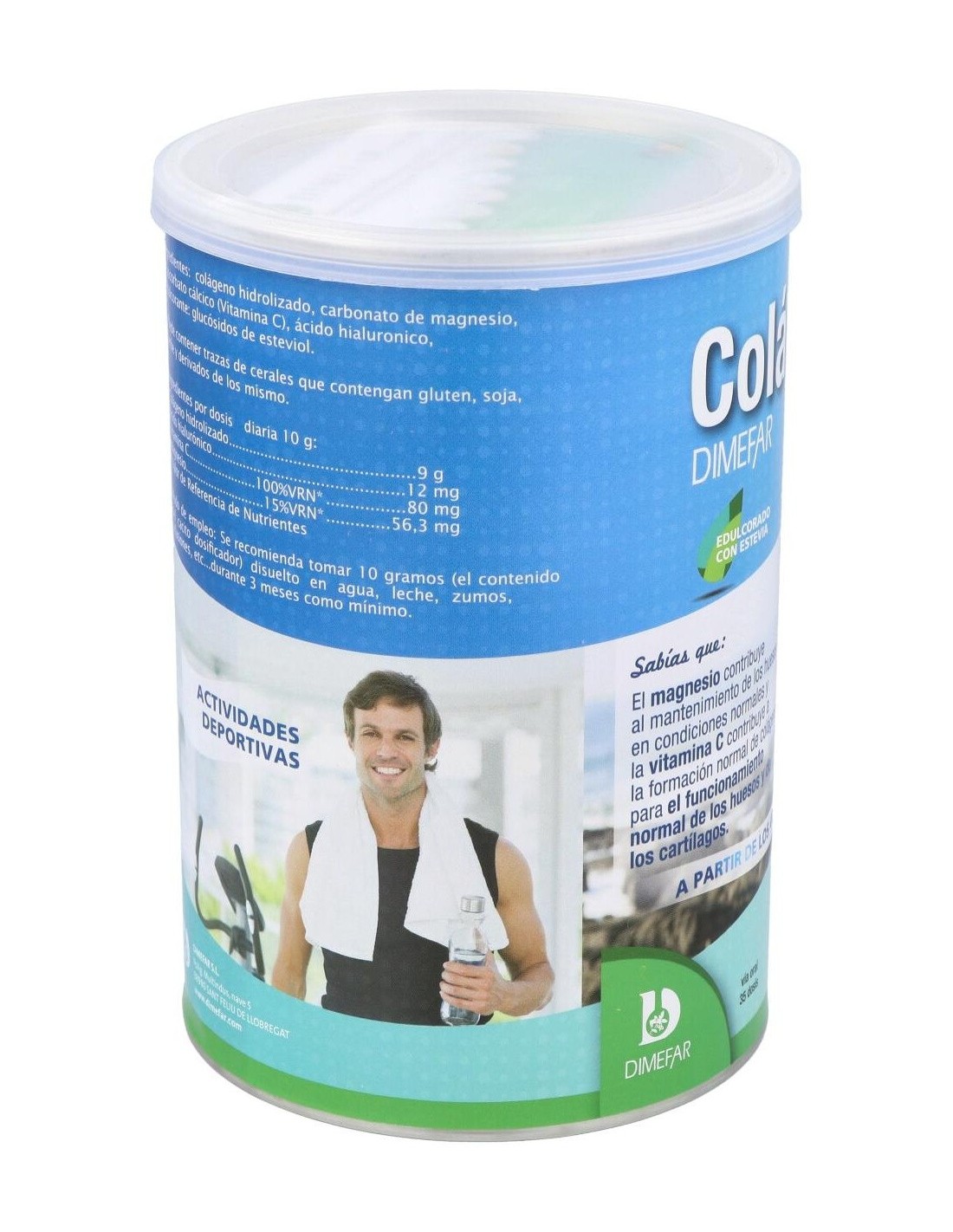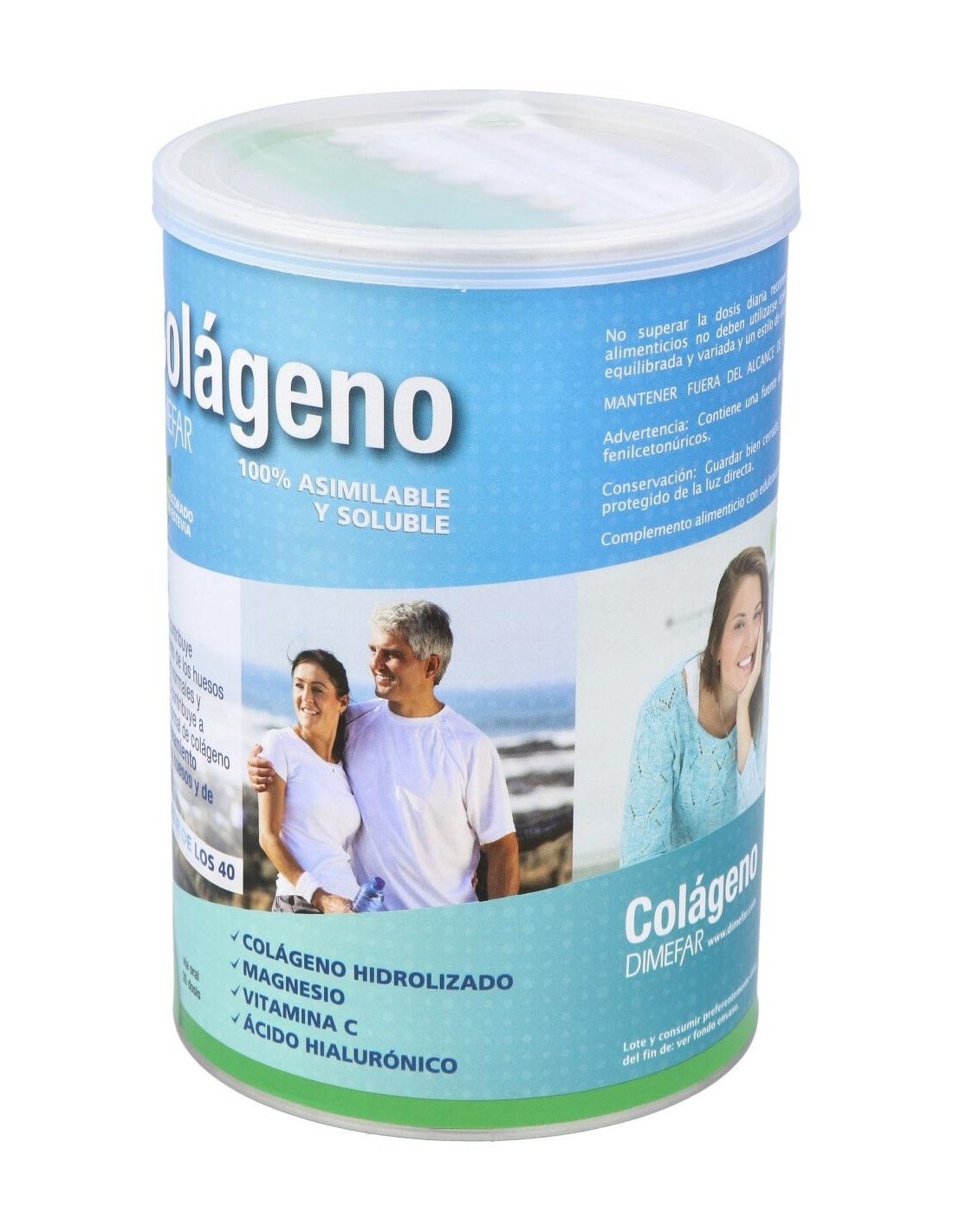 Dimefar Colágeno Polvo 350g es un complemento alimenticio elaborado con colágeno hidrolizado de alta digestibilidad y biodisponibilidad y combinado con ácido hialurónico, vitamina C, magnesio. Este producto contribuye a mantener una buena salud articular.
