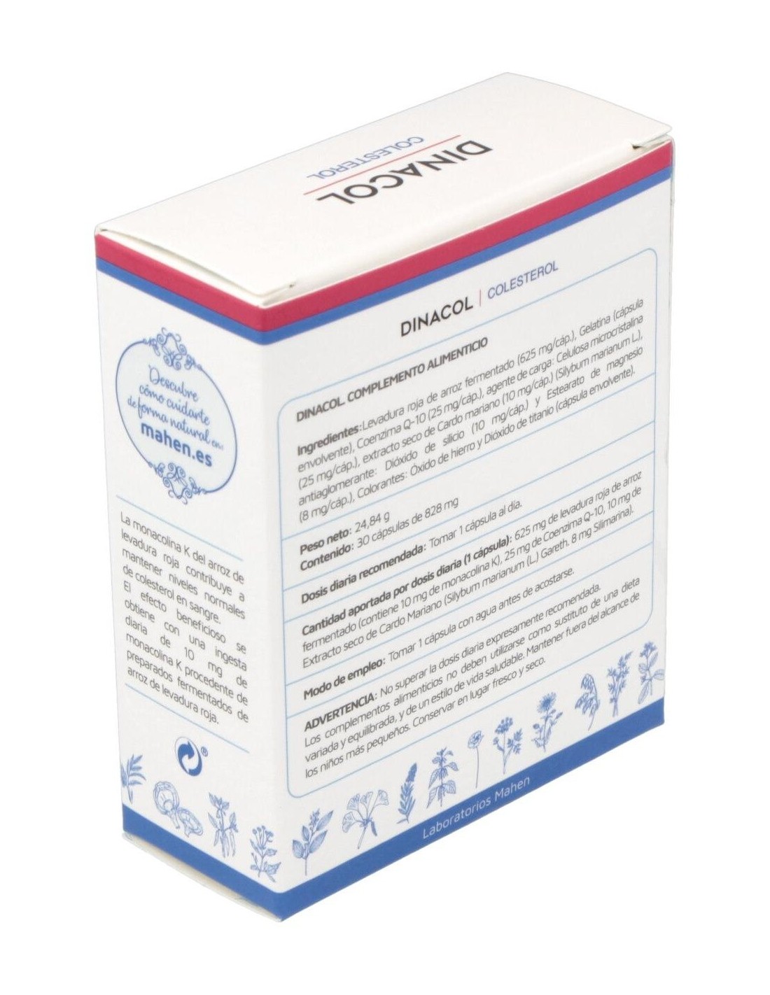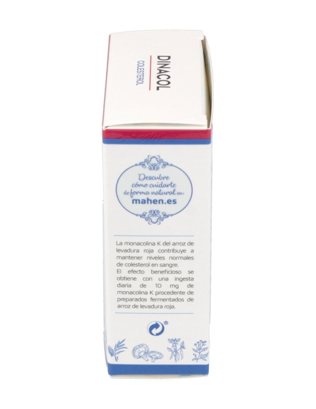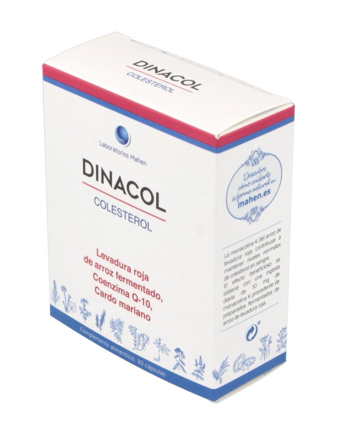 Dinacol es un un aliado natural del colesterol saludable. El producto contiene una sustancia tradicional china, resultante de la fermentación de un tipo de levadura llamada Monascus Purpureus sobre el arroz, la cual puede ayudarte a mantener niveles saludables de colesterol. Dinacol contiene arroz rojo fermentado sin procesos añadidos, de alta calidad y con un alto grado de pureza. Con un proceso natural de fermentación, ha sido desarrollado y fabricado en proceso natural. Se encuentra información de los beneficios de esta antigua preparación ya en el año 800 DC. Contiene monacolinas, sustancias que existen de manera natural y son similares (y en algunos casos, idénticas) a las conocidas "estatinas". Dinacol es un complemento alimenticio que, junto con una dieta variada y equilibrada y un estilo de vida saludable, puede ayudarte a mantener niveles saludables de colesterol. Composición activa por cápsula: