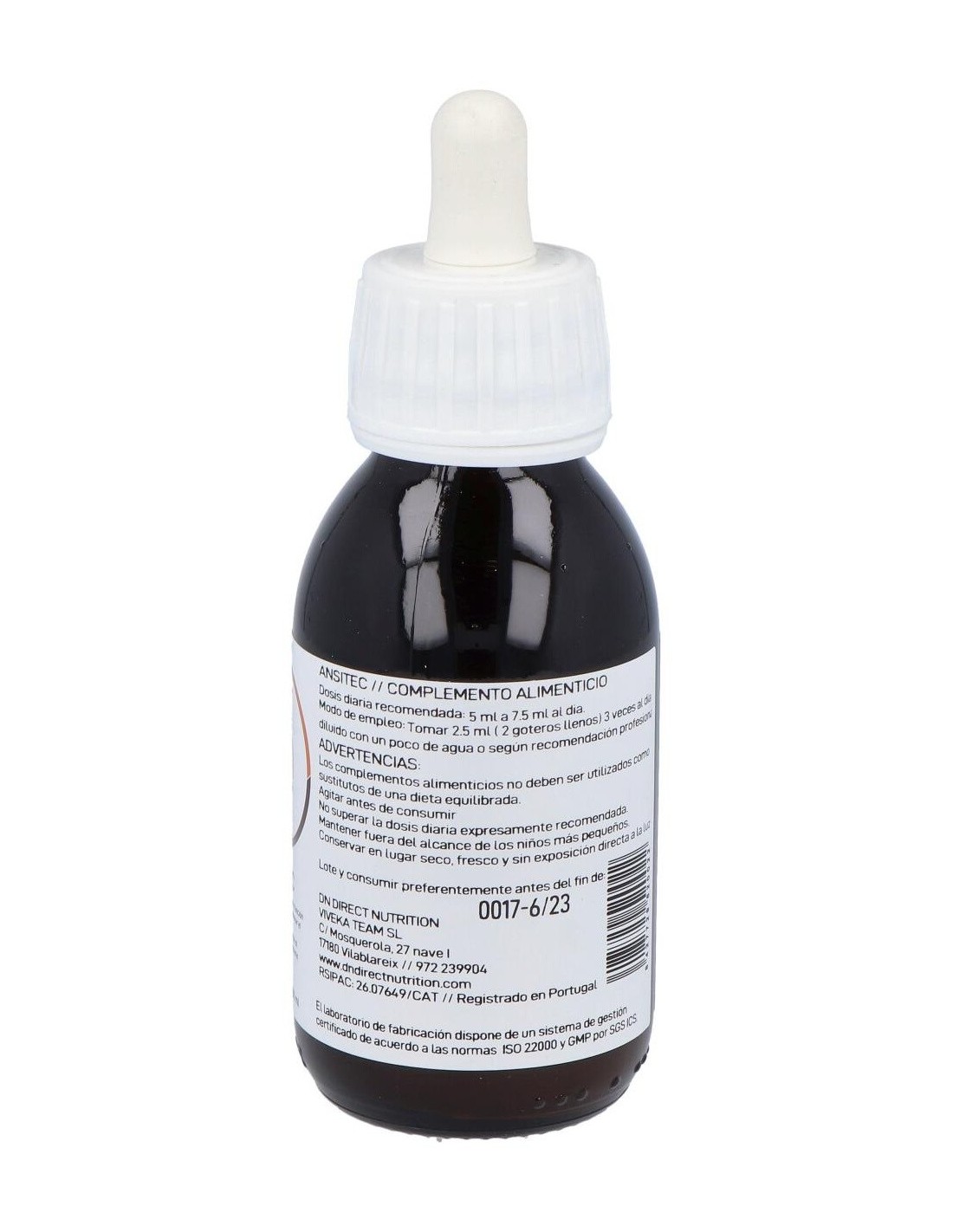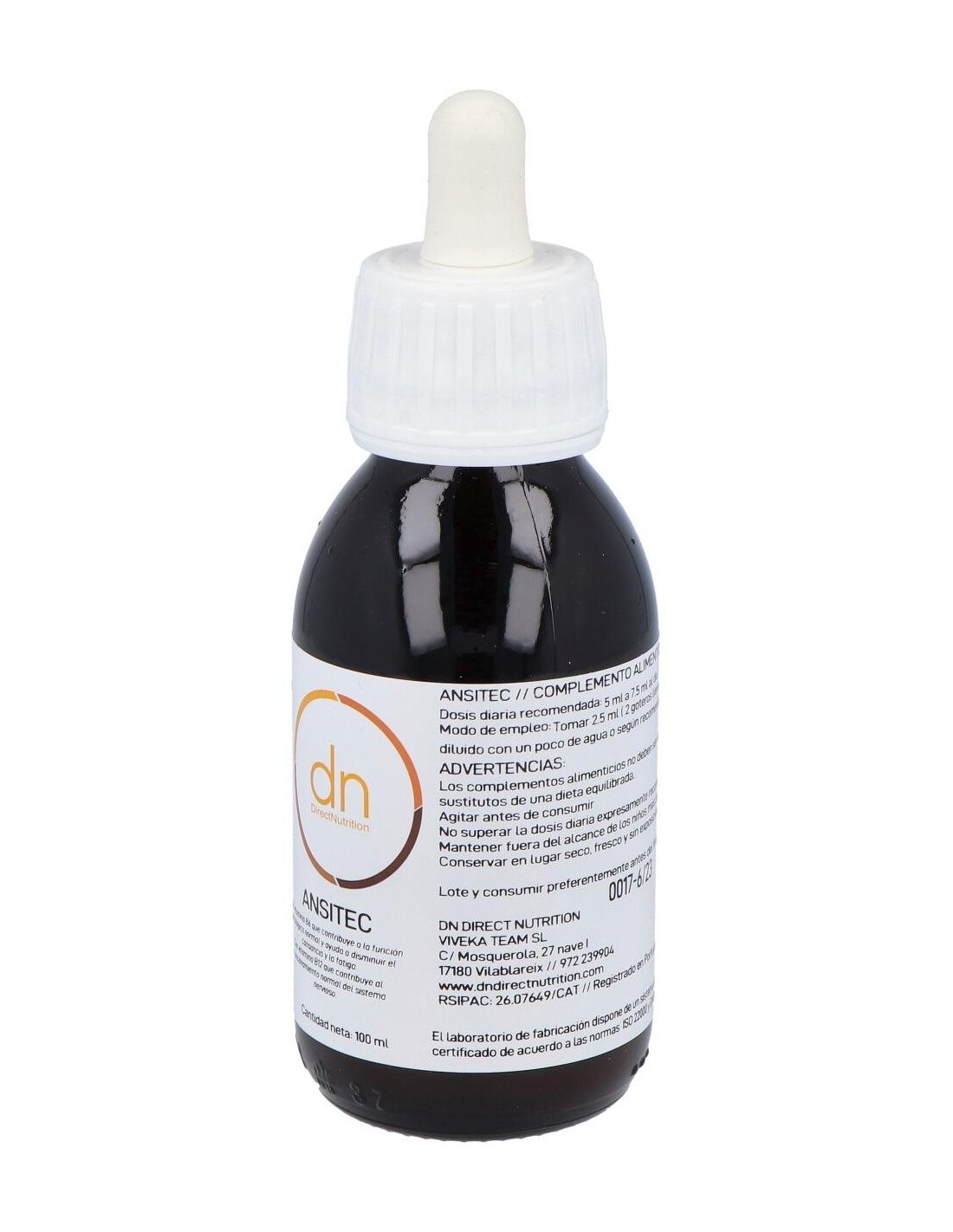 Direct Nutrition Ansitec 100ml es un suplemento de Direct Nutrition para la relajación general del organismo que consta de una mezcla de elementos de origen natural que ayudan a disminuir la sensación de nervios en el cuerpo. Posee extracto de valeriana officinalis que promueve la conciliación del sueño. Además, cuenta con dosis de vitamina B6 y B12 que contribuyen al correcto funcionamiento del sistema nervioso y de las capacidades cognitivas. Está recomendado para usuarios frecuentemente expuestos a entornos estresantes y para regular trastornos del sueño. Se puede usar en jóvenes y adultos. Mantener alejado del alcance de los niños. No ingerir en cantidades excesivas. En caso de observar resultados negativos, se aconseja suspender el uso y consultar con el médico o farmacéutico de confianza.