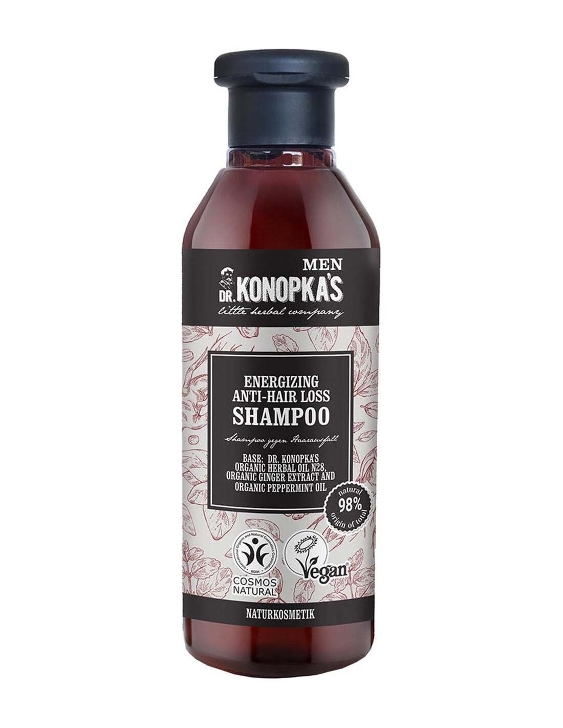 Este champú contiene una poderosa mezcla del aceite de hierbas orgánico n.º 28 del Dr. Konopka, extracto de jengibre orgánico y aceite de menta piperita orgánico.\ Energiza el cuero cabelludo, ayuda a controlar la caída capilar y nutre el cabello desde las raíces para dejarlo más fuerte, grueso y sano. Certificado BDIH Cosmos Natural y Vegan.