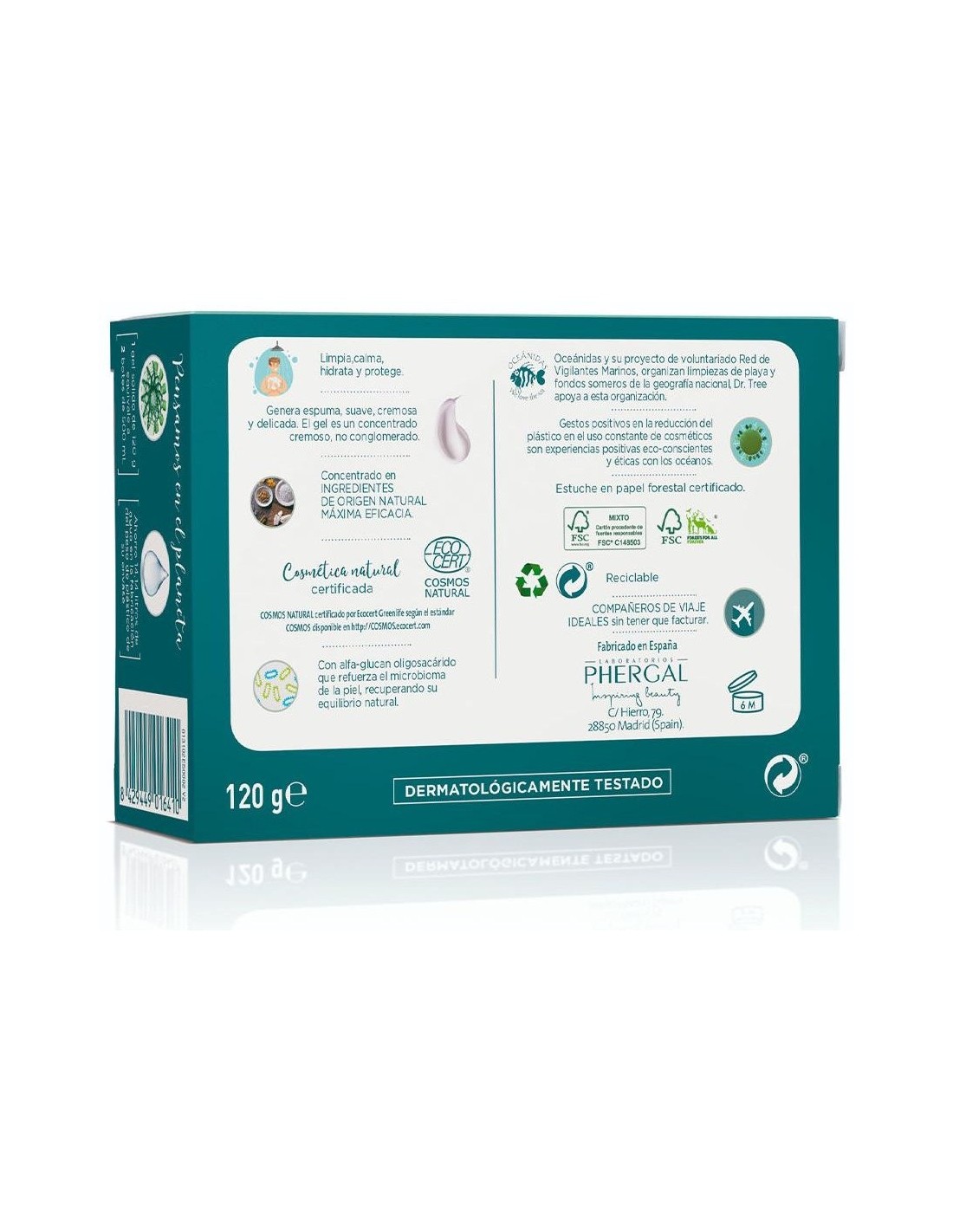 Limpia, calma, hidrata y protege, generando una espuma, suave, cremosa y delicada. El gel es un concentrado cremoso, no conglomerado. Formulado con alga de Wakame, Aceites esenciales de Romero BIO y Eucaliptus BIO. Refuerza el microbioma e incluye un aroma 100% de origen natural y vegano. Certificado Ecocert COSMOS Natural.