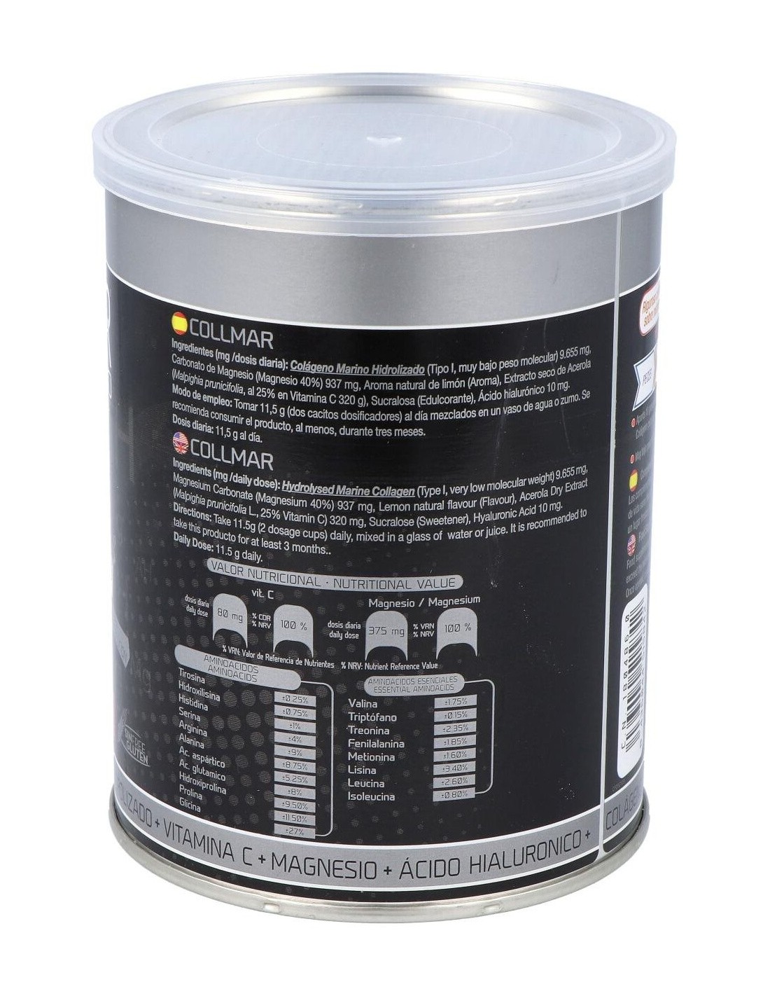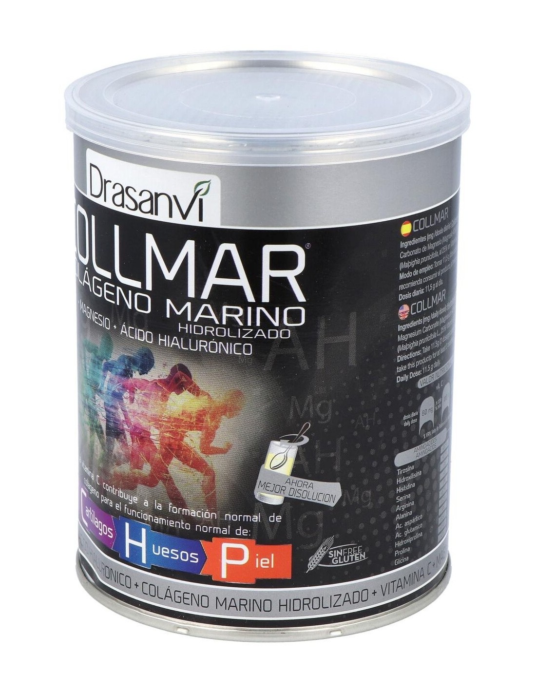 Collmar® es un producto formado por colágeno marino de tipo I (formado por péptidos bioactivos con bajo peso molecular) producido a partir de piel y escamas de pescado rigurosamente controlado. Entre su composición destaca su alto contenido en aminoácidos como la glicina, prolina e hidroxiprolina que juntos aportan más del 50% del total.