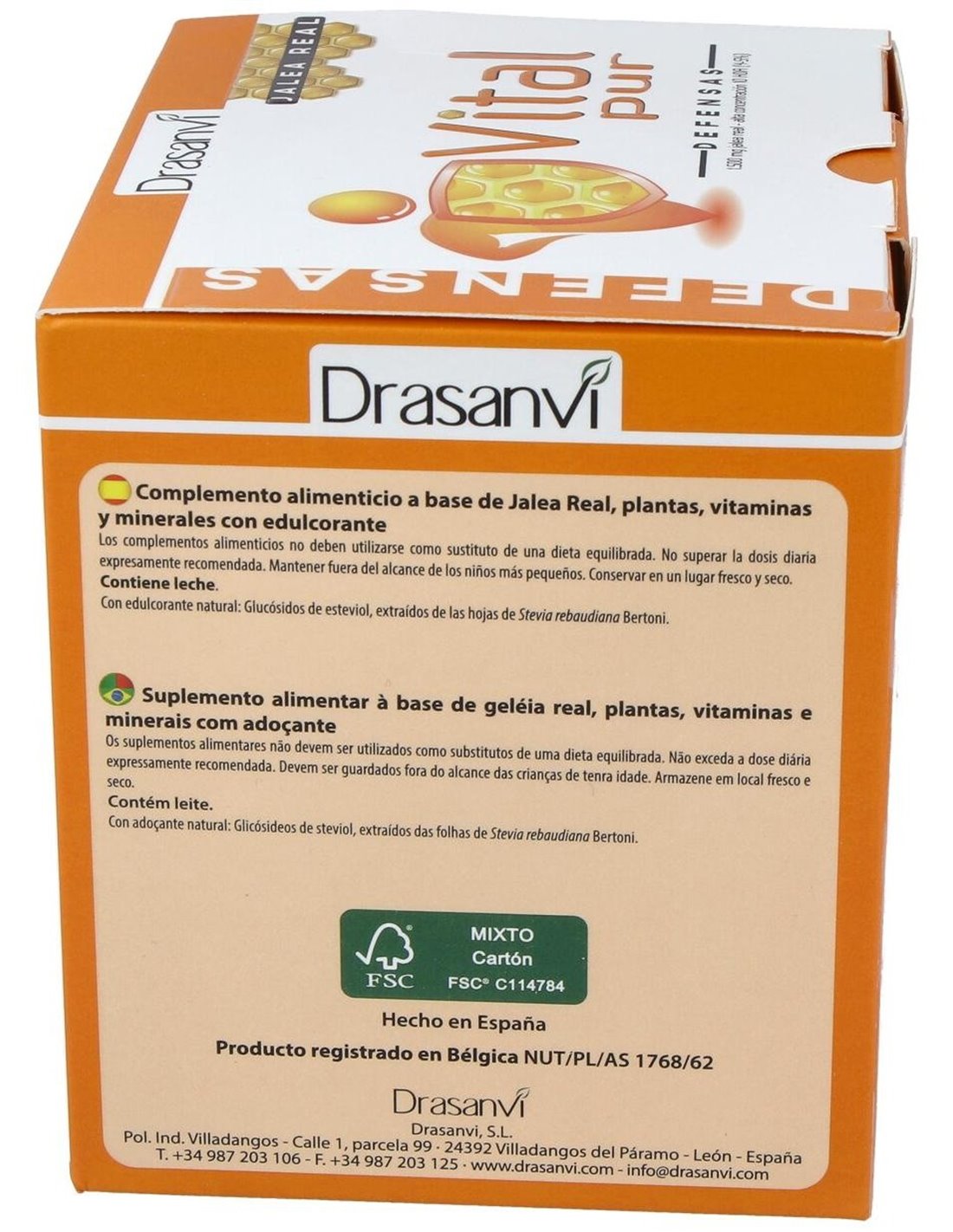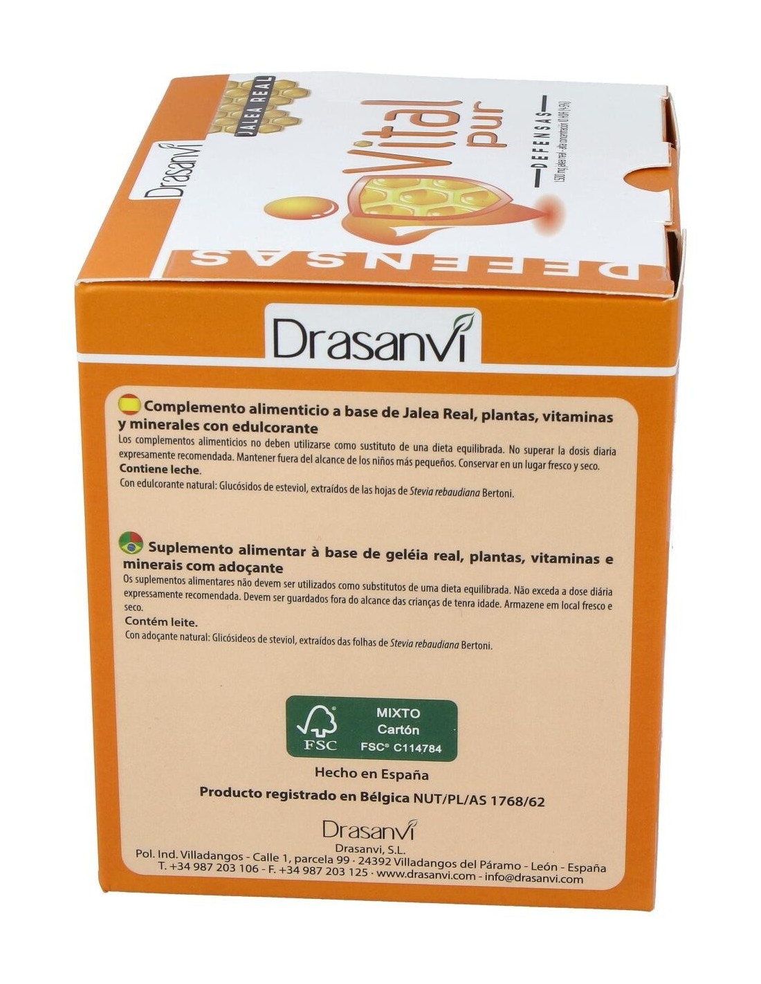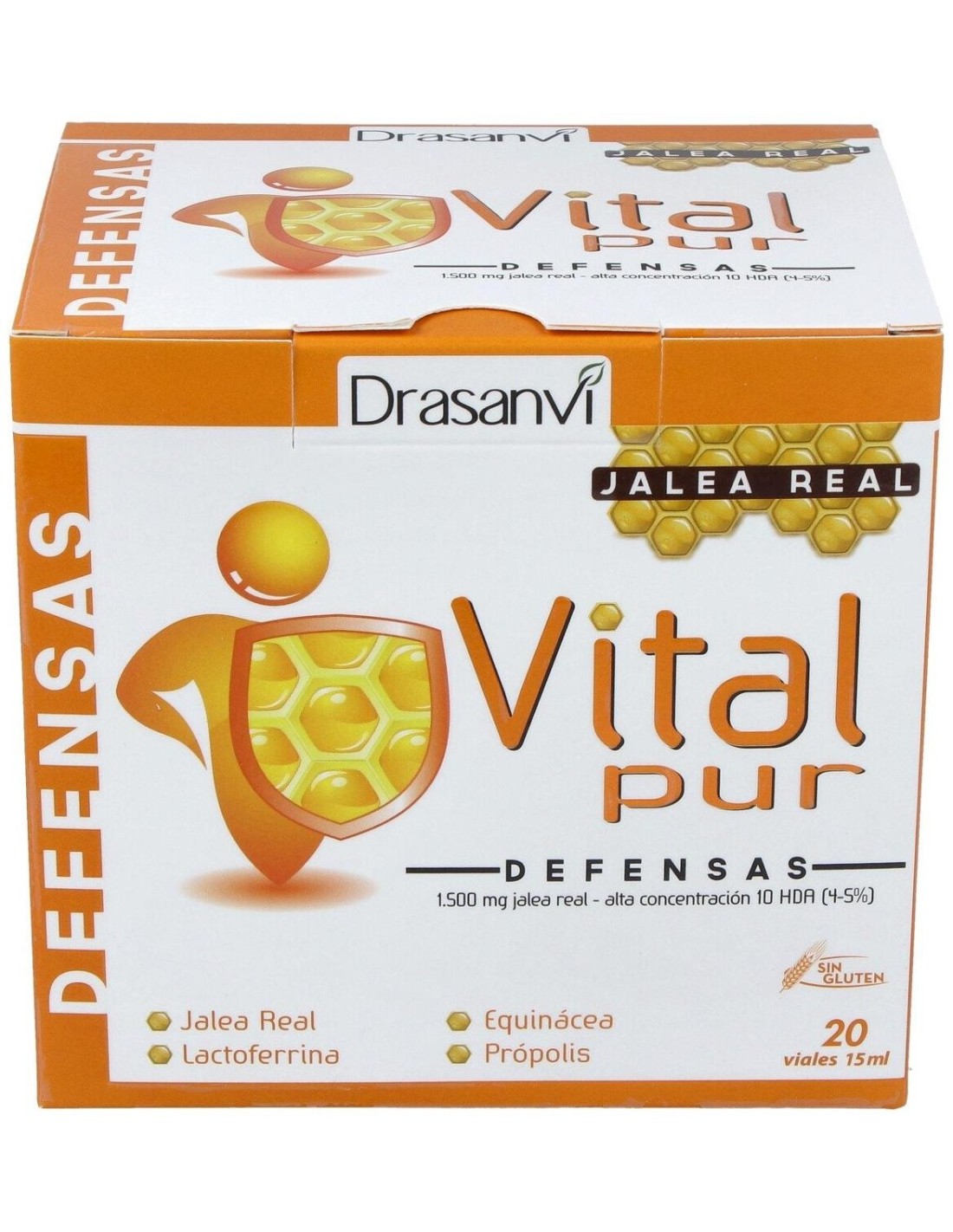 Este producto contribuye al funcionamiento normal del sistema inmunitario. Vitalpur Defensas, es un complemento alimenticio a base de Jalea Real (1.50