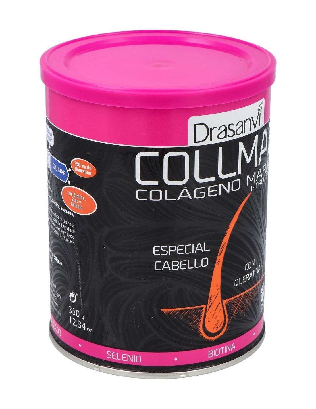 Collmar Especial Cabello es un complemento alimenticio que fundamenta su acción en la sinergia de dos de sus ingredientes principales: el Colágeno Marino hidrolizado enzimáticamente y la Queratina. Se trata de dos proteínas que se encuentran de manera natural en el cabello. Además, este complemento está reforzado con Biotina y Zinc, los cuales contribuyen al mantenimiento del cabello en condiciones normales. Principios activos:- Colágeno Marino Hidrolizado: El colágeno es una de las proteínas más abundantes de nuestro cuerpo. Se encarga de dotar al cabello de su estructura. Tiende a disminuir con la edad y por las agresiones externas como aire, sol, uso de secadores, tintes... Como consecuencia de esta disminución, el peso se paga, se debilita, se vuelve quebradizo, freo, puediendo incluso llegar a carese. Según investigaciones científicas, la proporción de colágeno en el cuerpo empieza a reducirse de forma paulatina a partir de cierta edad. Esto se acelera si a partir de los 45 años, cuando nuestro cuerpo llega a reducir la producción de colágeno hasta en un 35%. La ingesta de colágeno, nos ayuda a regenerar el cabello de forma saludable.