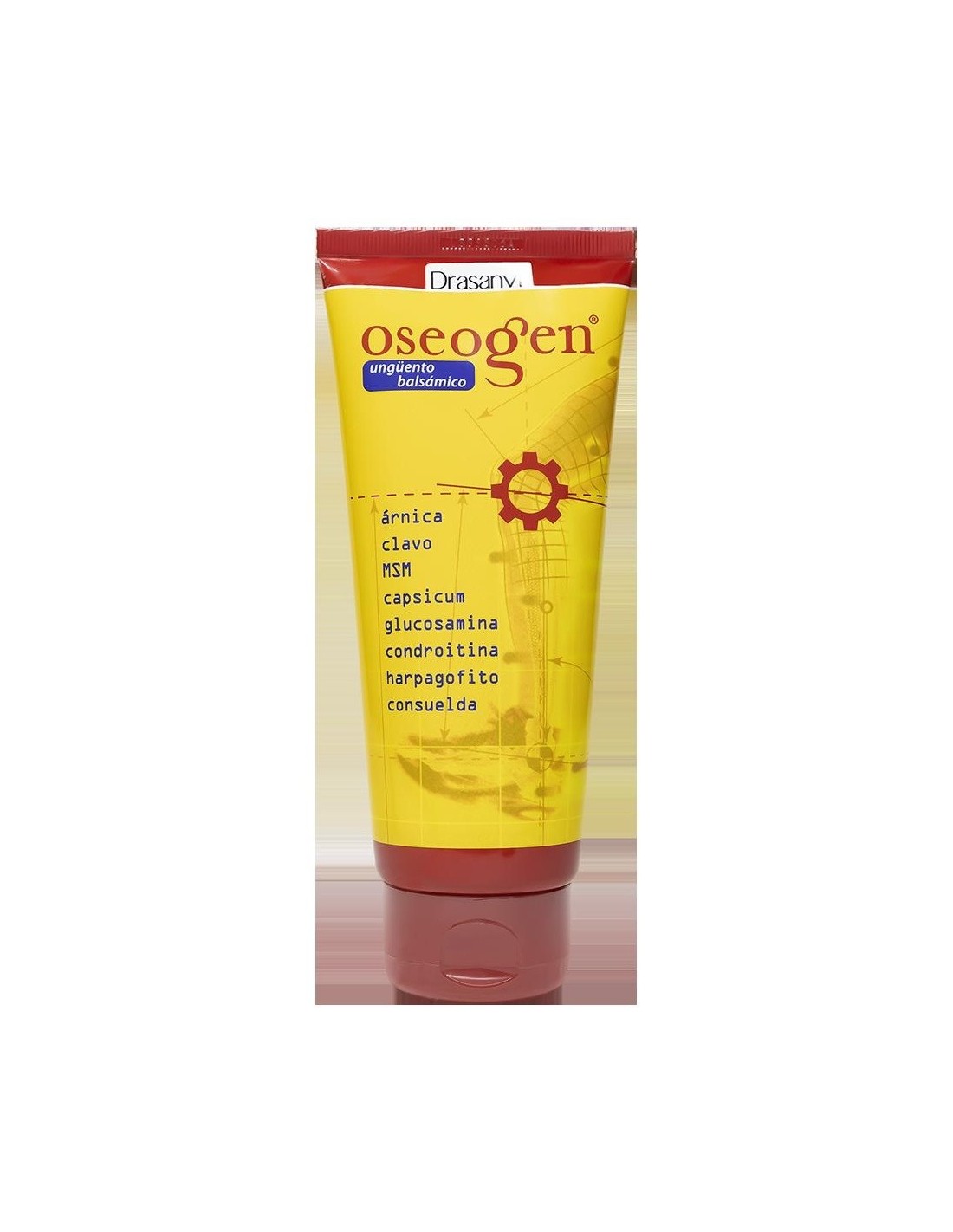 Oseogen ungüento balsámico presenta en su composición la sinergia de varios ingredientes: Condroitina, Glucosamina, Metilsufonilmetano (MSM), Harpagófito, Ruscus , Consuelda y Árnica. Además se ve incrementado por el efecto de sustancias como el Clavo y el Capsicum, que proporcionan al producto un ligero efecto calor.Ingredientes (INCI): Aqua(Water), Dimethyl Sulfone, Caprylic/Capric Triglyceride, Cetearyl Alcohol, Glycine Soja Oil, Oleic Acid, Urea, Cetearyl Olivate, Glucosamine Sulfate, Cera Alba(Beeswax), Sorbitan Olivate, Isohexadecane, Eugenia Caryophyllus Leaf Oil, Arnica Montana Flower Extract, Sodium Chondroitin Sulfate, Harpagophytum Procumbens Root Extract, Salix Alba(Willow) Bark Extract, Symphytum Officinale Root Extract, Linoleic Acid, Palmitic Acid, Stearic Acid, Capsicum Frutescens Fruit Extract, Hydrogenated Rapeseed Oil, Tocopheryl Acetate, Glycerin, Acrylates/C10-30 Alkyl Acrylate Crosspolymer, Propylene Glycol, Phenoxyethanol, Sodium Hydroxide, Ethylhexylglycerin, Potassium Sorbate, Sodium Benzoate, Iso Eugenol, Eugenol. Modo de empleo:Aplicar con un ligero masaje en las zonas a tratar hasta su total absorción las veces que sea necesario. Presentación:Envase de 200 ml.Recomendaciones y advertencias:No contiene gluten, perfumes, parabenos ni colorantes artificiales.