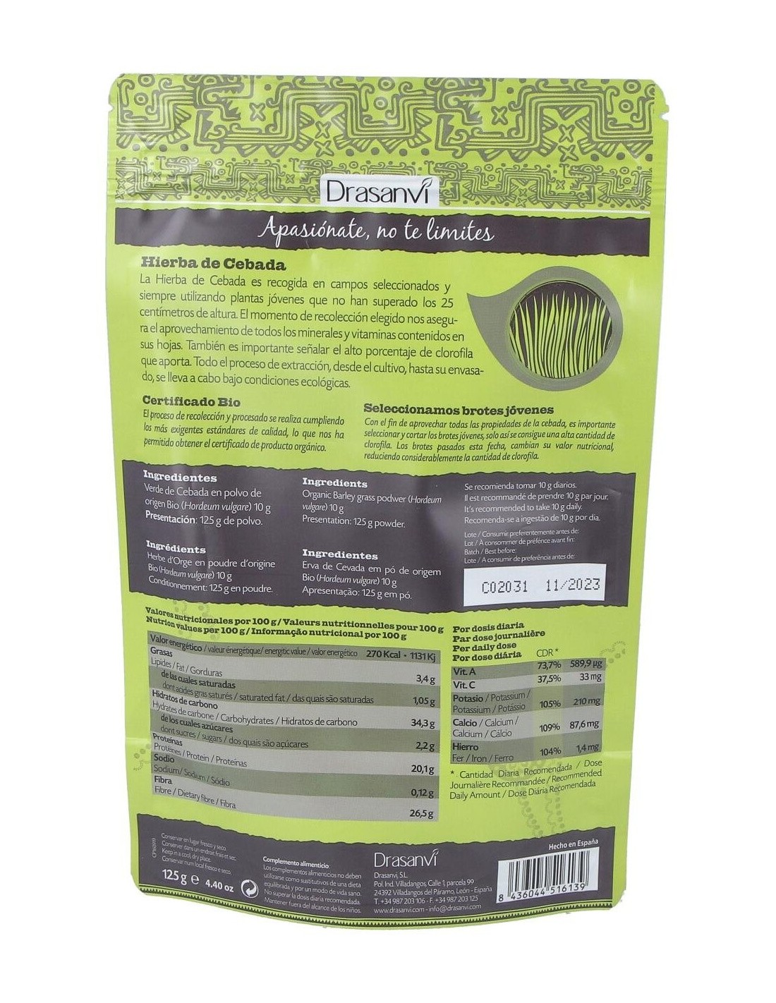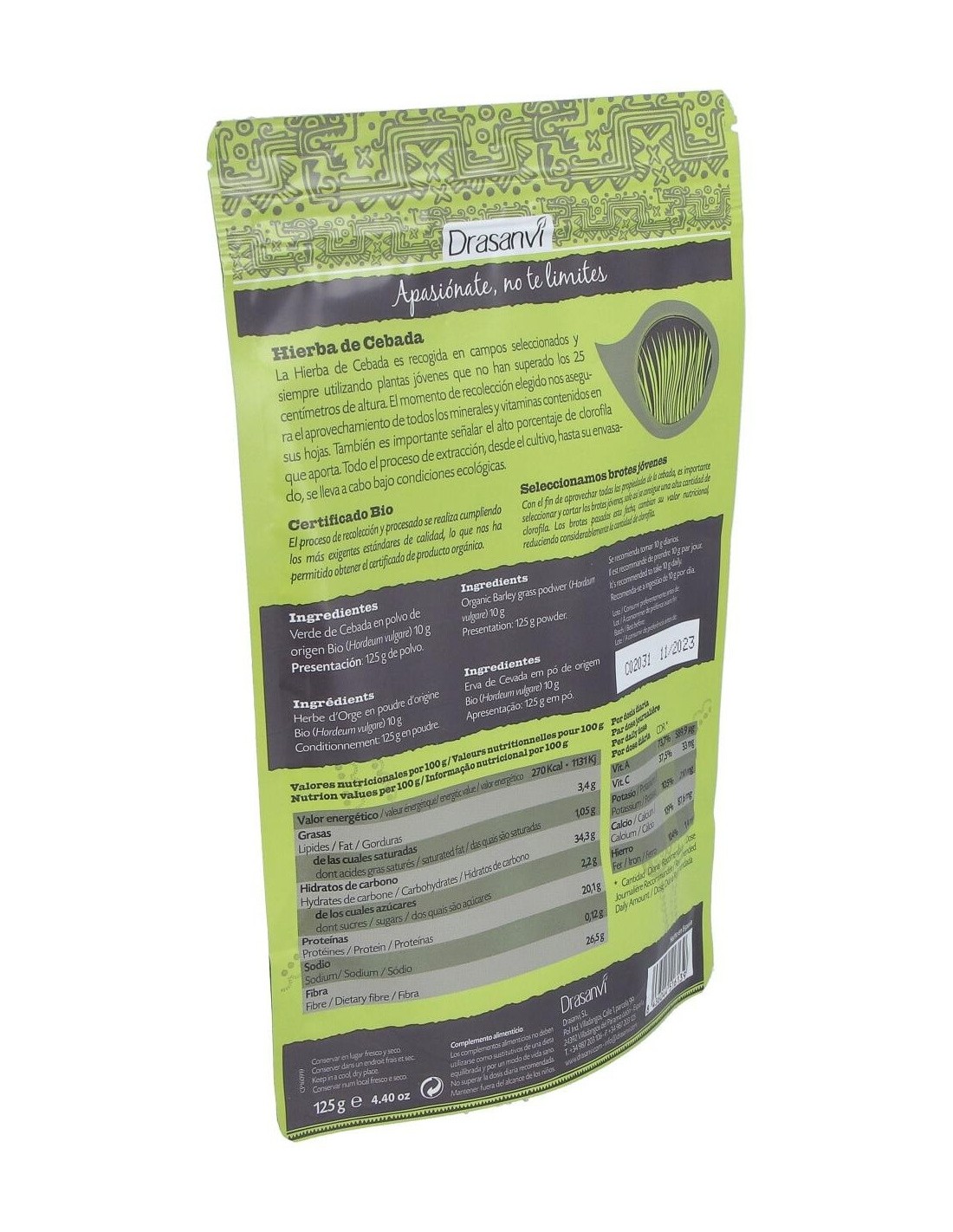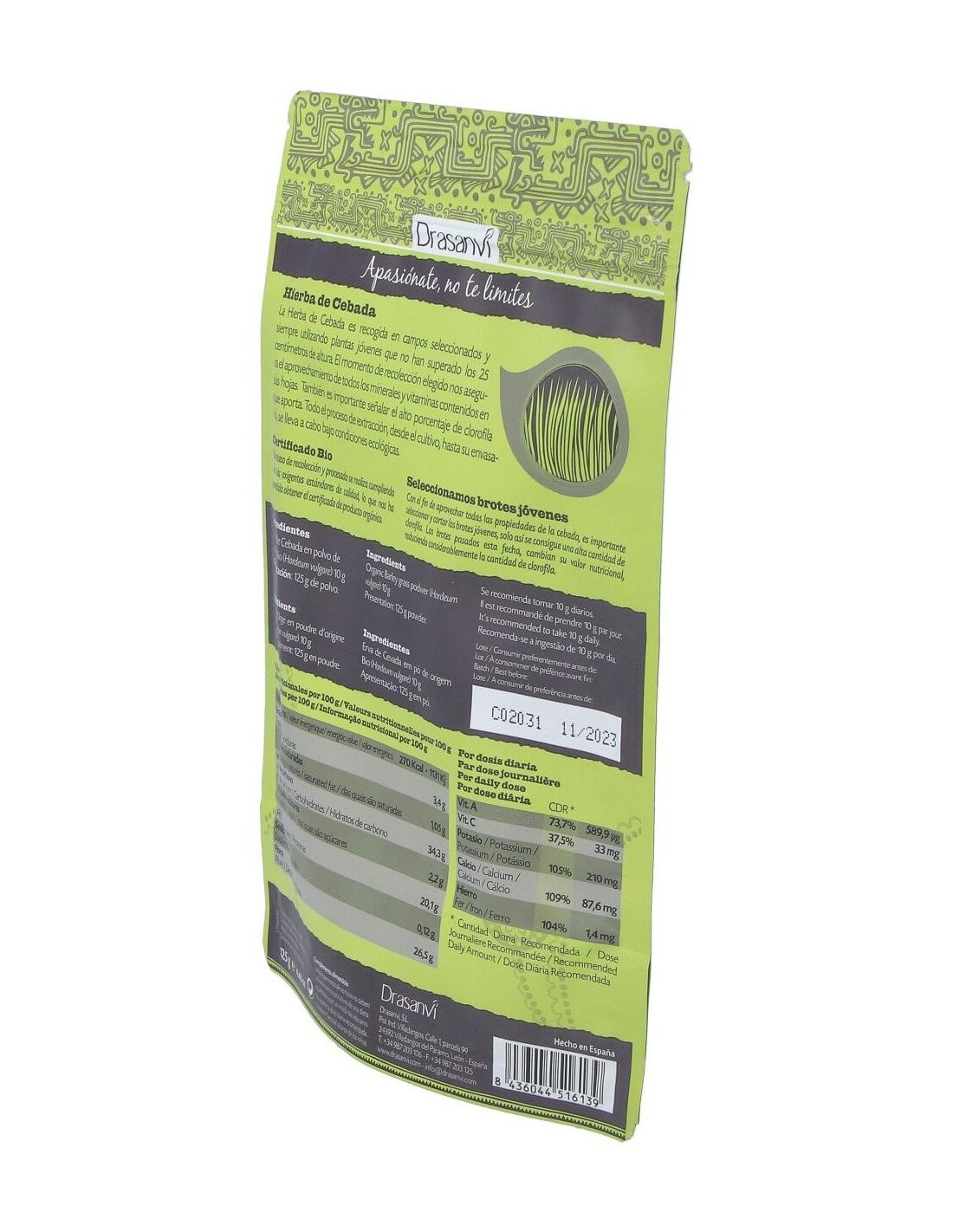 Hierba Cebada Bio 125 Gr Doypack Superalimentos Drasanvi