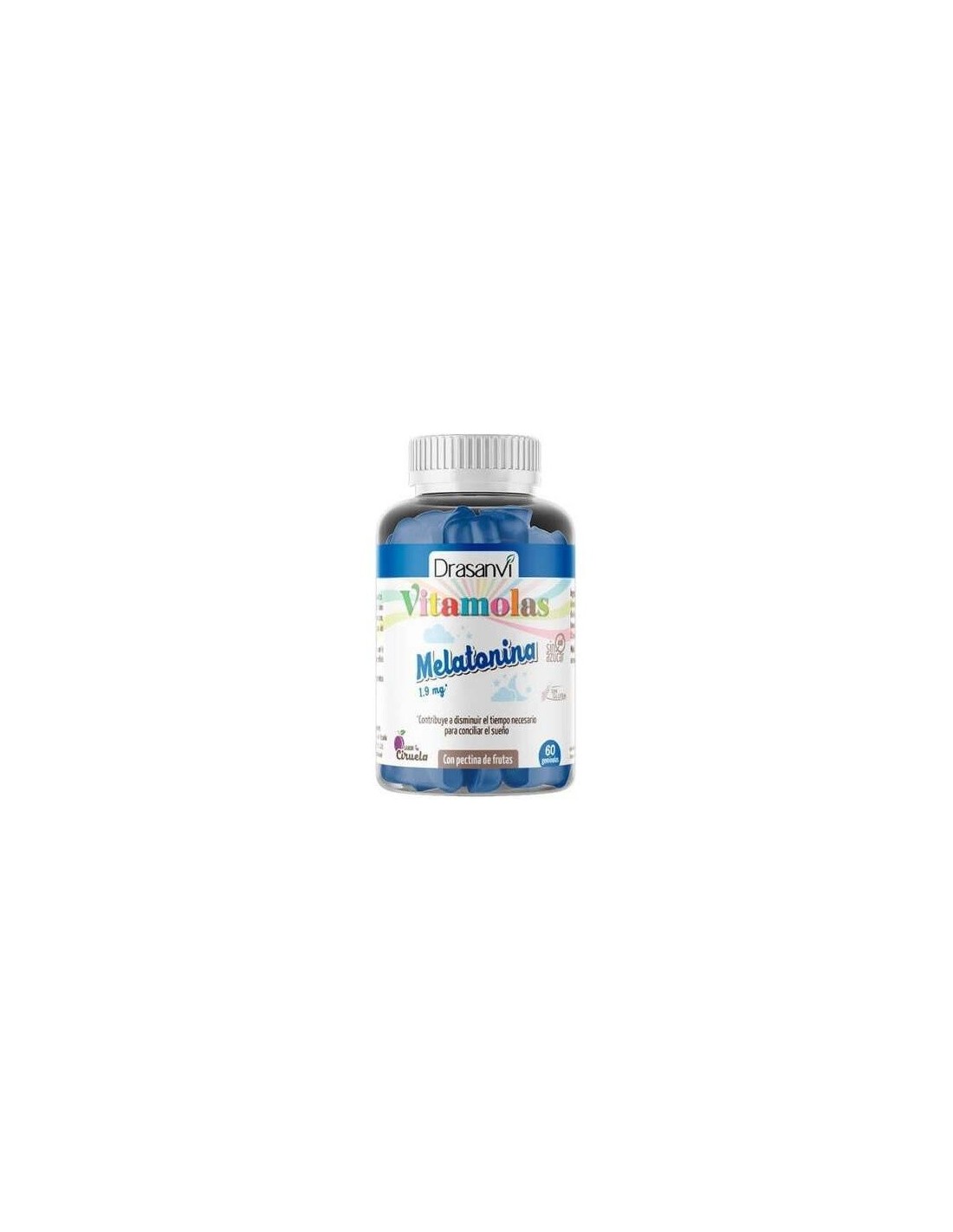 Las Vitamolas de Drasanvi son gominolas elaboradas a base de pectina de fruta (sin gelatina) sin azúcares y sin alérgenos. Las Vitamolas con Melatonina de Drasanvi contienen 1,9 mg de Melatonina pura por gominola. Estas gominolas contienen como único principio activo la Melatonina. Esta sustancia es una hormona que, de manera natural, es segregada por la hipófisis y regulada por la presencia de luz. Esta hormona se relaciona con el control del reloj biológico, sueño-vigilia. La Melatonina tradicionalmente ha sido empleada para contribuir a aliviar la sensación subjetiva del jetlag. La Melatonina contribuye a disminuir el tiempo necesario para conciliar el sueño.Ingredientes:Edulcorante (Jarabe de maltitol), Edulcorante (Jarabe sorbitol), Edulcorante (Maltitol en polvo), Pectina de frutas 52,5 mg, Agua, Acidulante (Ácido cítrico), Aroma (Aroma ciruela), Melatonina (libre de procedencia animal) 1.9 mg, Colorante azul FCF. Modo de empleo:Tomar 1 gominola, preferiblemente, una hora antes de acostarse.Presentación:Envase de 60 gominolas sabor ciruela.Recomendaciones y advertencias:No contiene gluten, azúcar ni alérgenos.