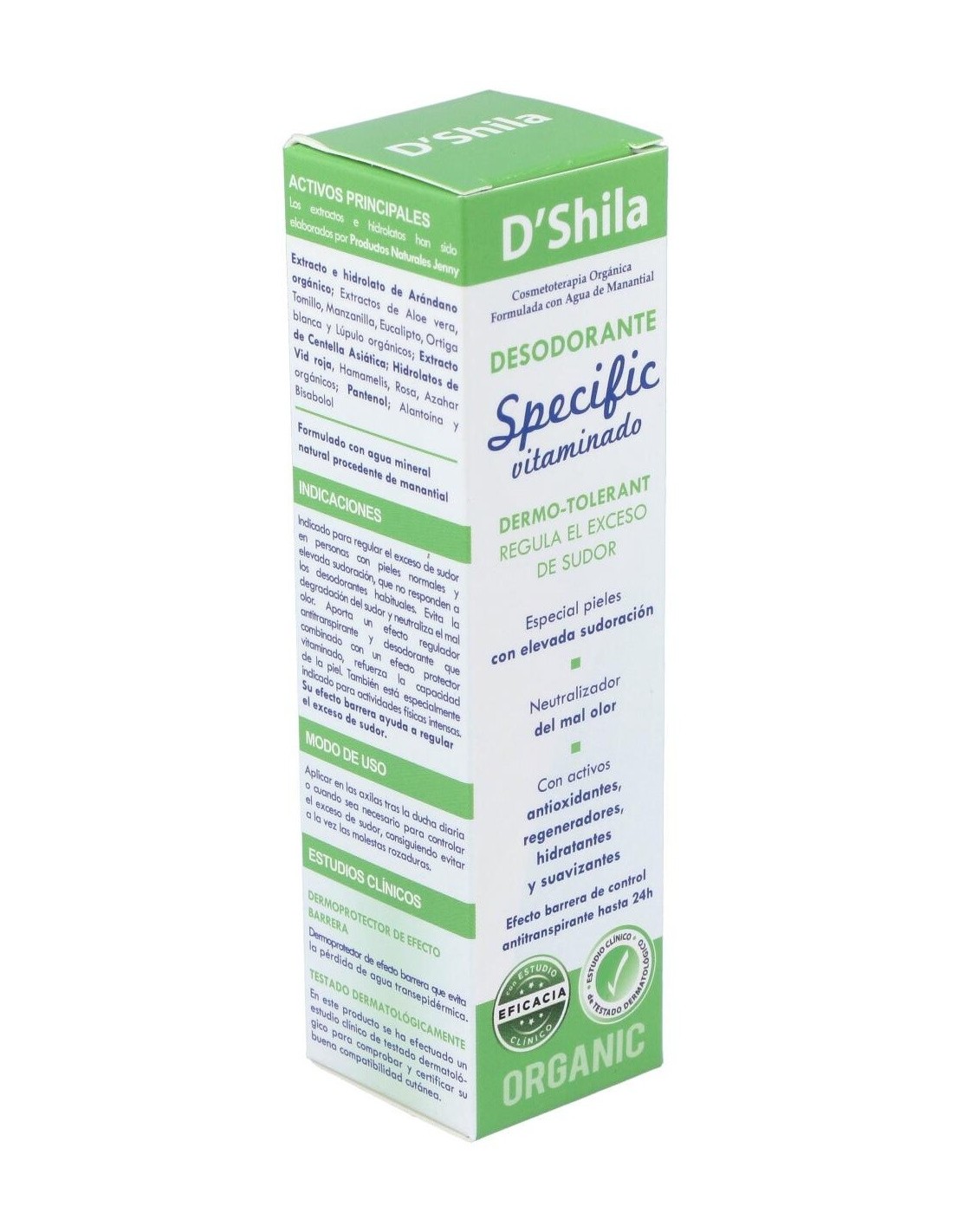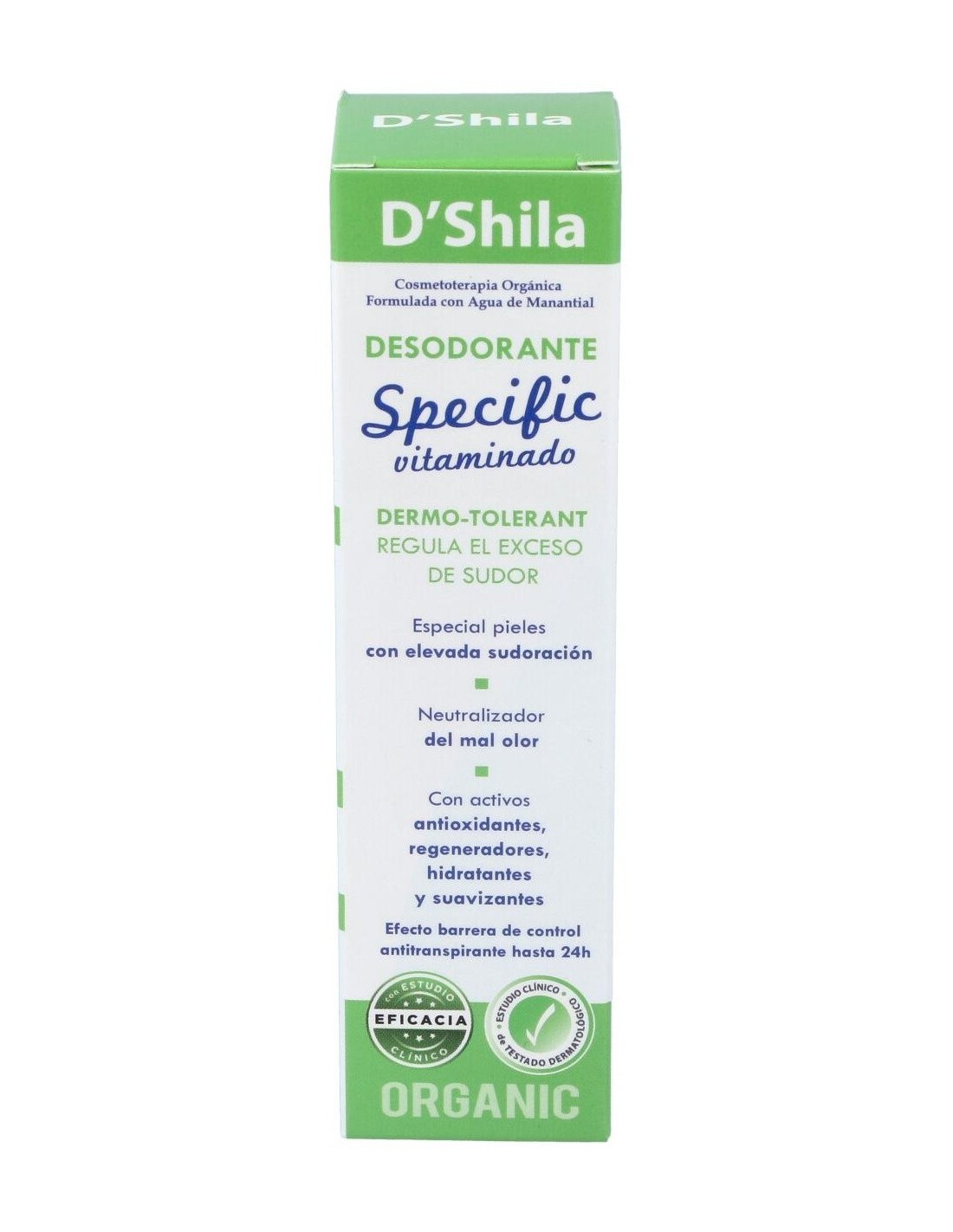D'shila desodorante Specific es un remedio ideal para combatir las pieles que sufren problemas graves de sudor y olor desagradable. Repele los fuertes olor, reduce la sensación de humedad y mejora la hidratación de la piel.