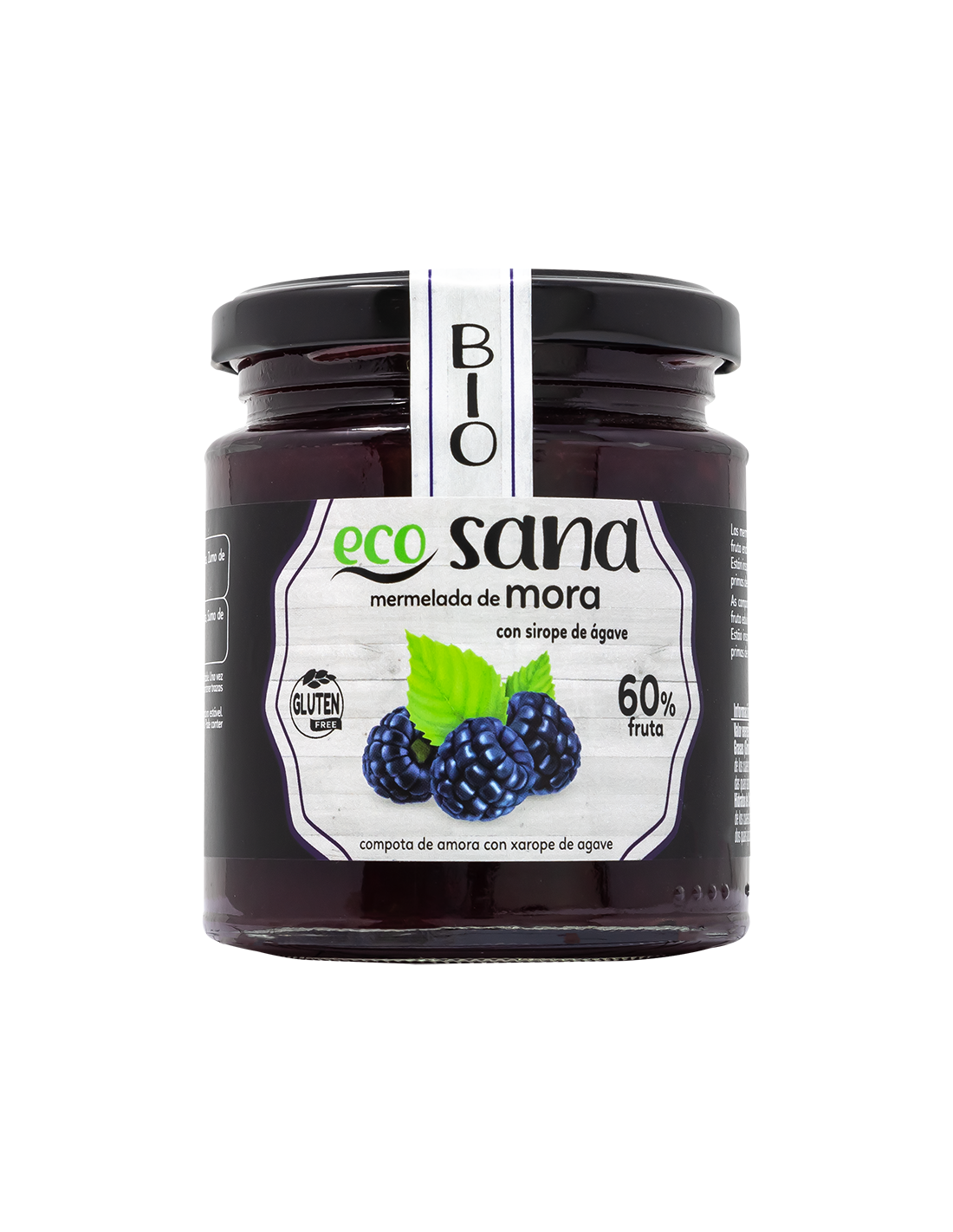 Ingredientes:Moras* (60%), Sirope de ágave*, Pectina de frutas, Zumo de limón*. (*) Procedente de agricultura ecológica.Valor nutricional por 100 gramos: