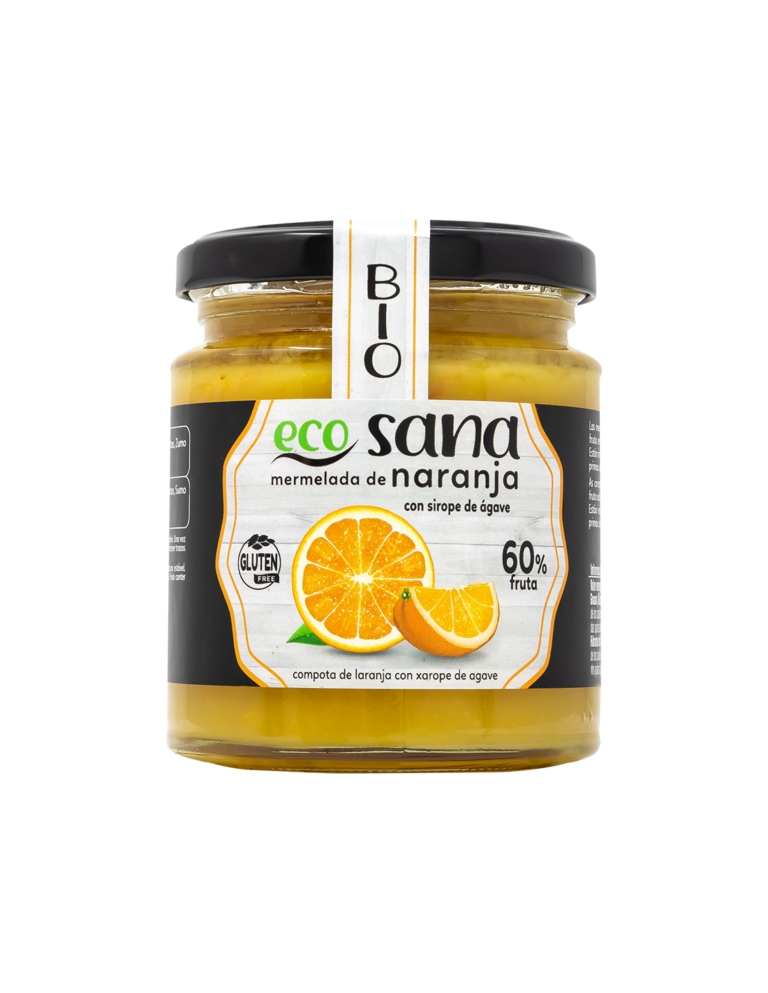 Ingredientes:Naranja dulce* (60%), Sirope de ágave*, Pectina de frutas, Zumo de limón*. (*) Procedente de agricultura ecológica.Valor nutricional por 100 gramos: