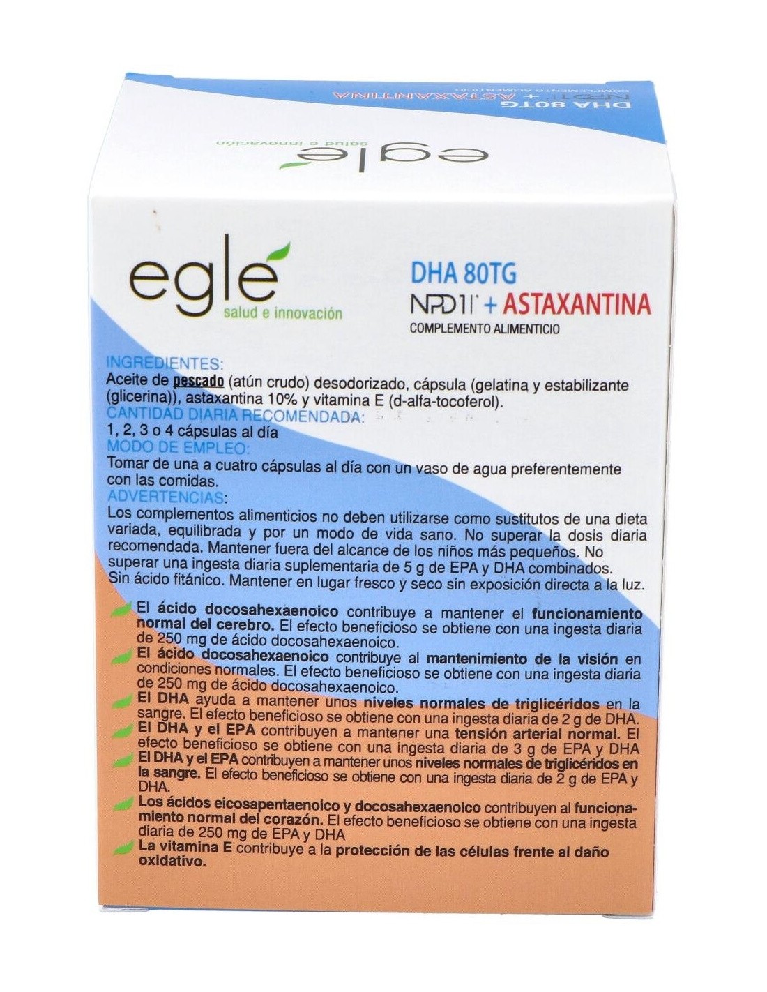 Npd1 Dha + Astaxantina 60Cap. de Egle es un suplemento diseñado para personas interesadas en complementar su dieta con ingredientes que apoyan funciones cognitivas y bienestar general. Su formulación combina componentes seleccionados para integrarse fácilmente en rutinas diarias.