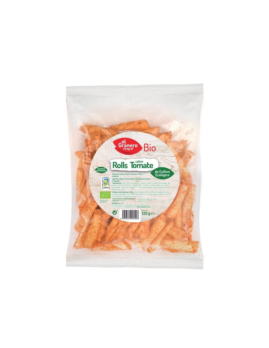 Nachos Bioroll'S Con Tomate Bio, 125 G de El Granero Integral