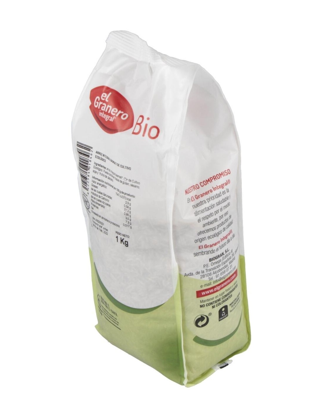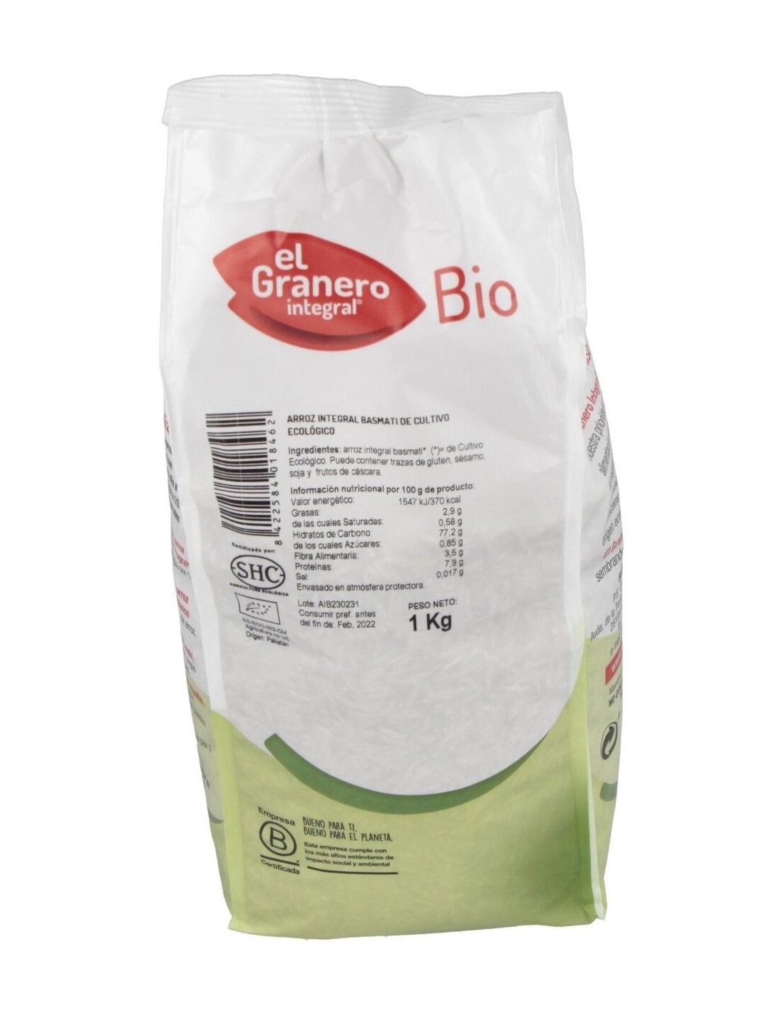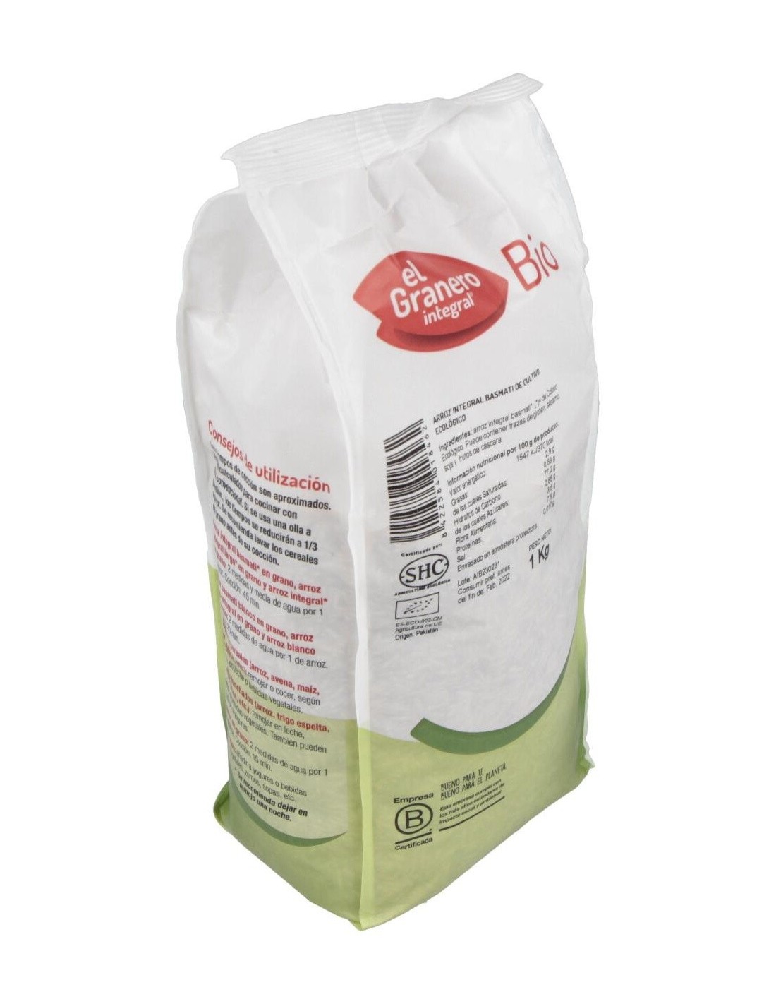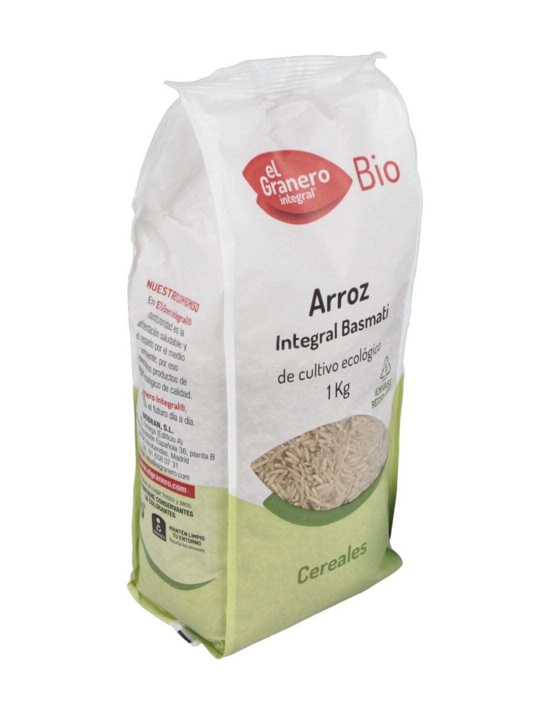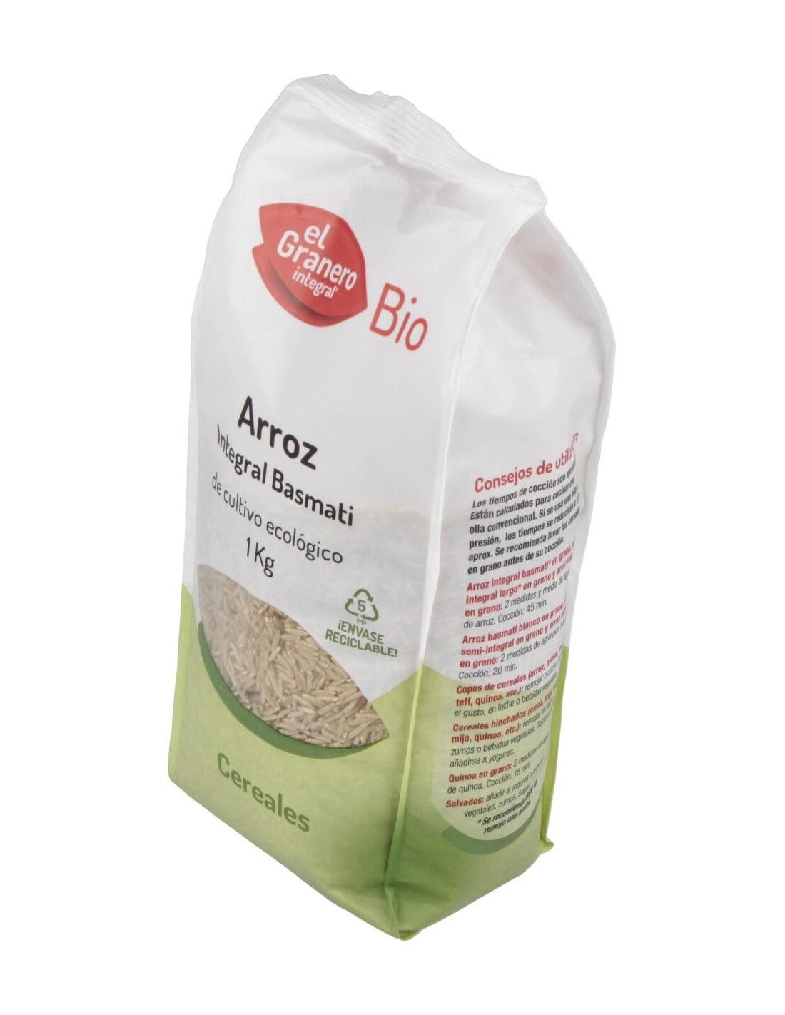 El Arroz Integral Basmati Bio, 1 Kg de El Granero Integral, es un cereal ecológico para consumidores conscientes que buscan una opción nutritiva y natural, gracias a su cultivo orgánico certificado.