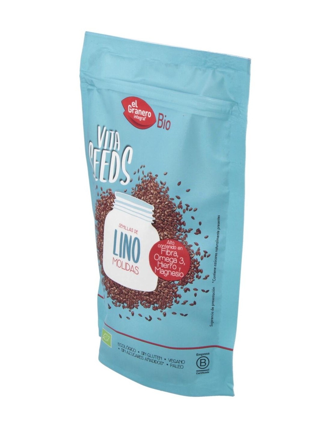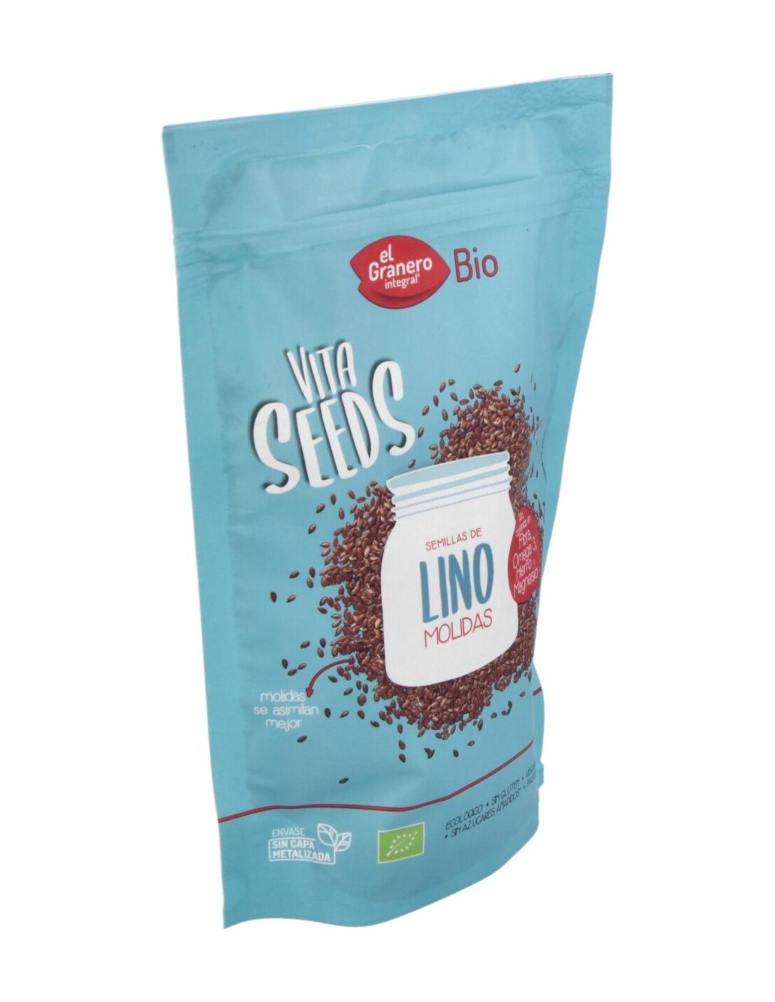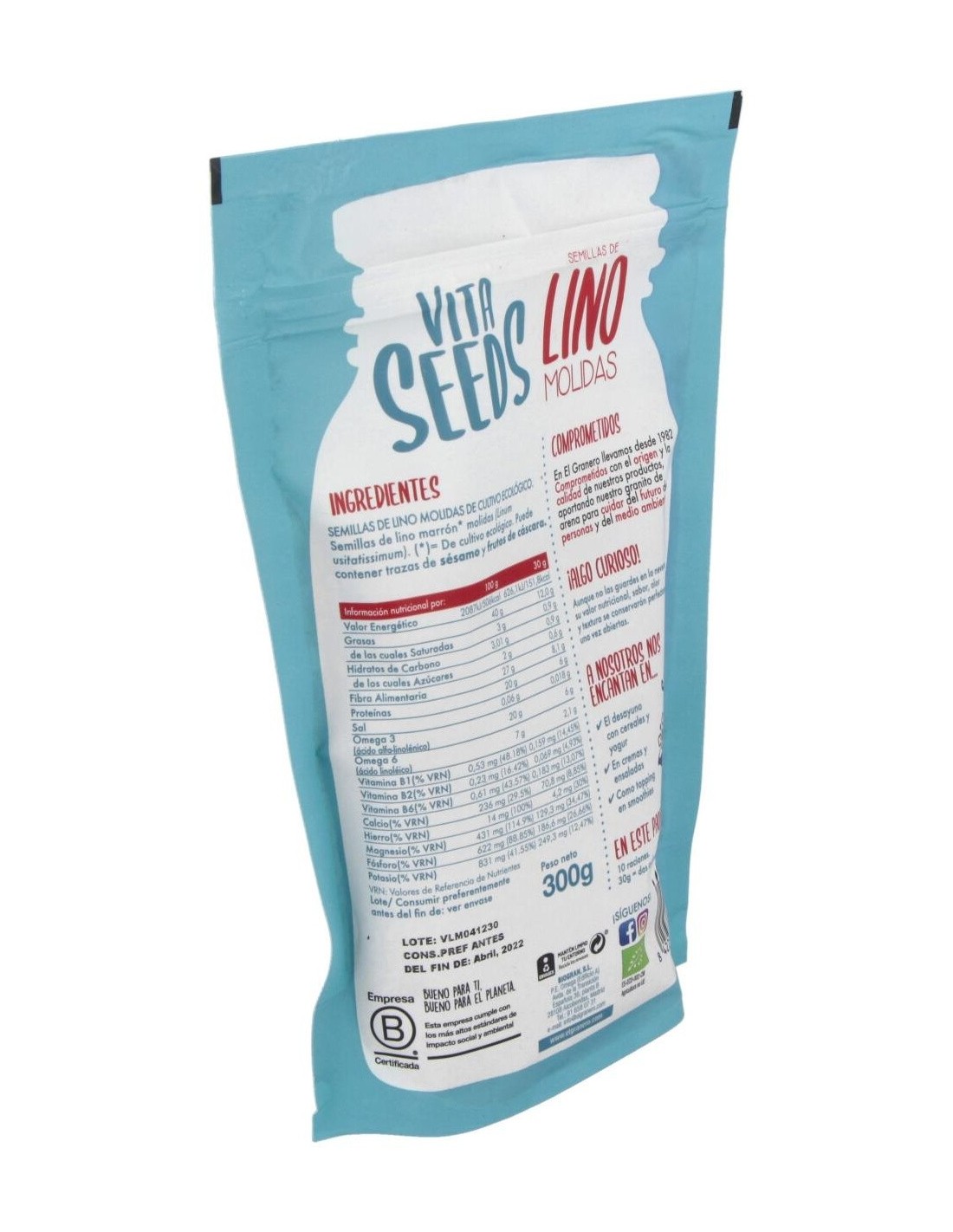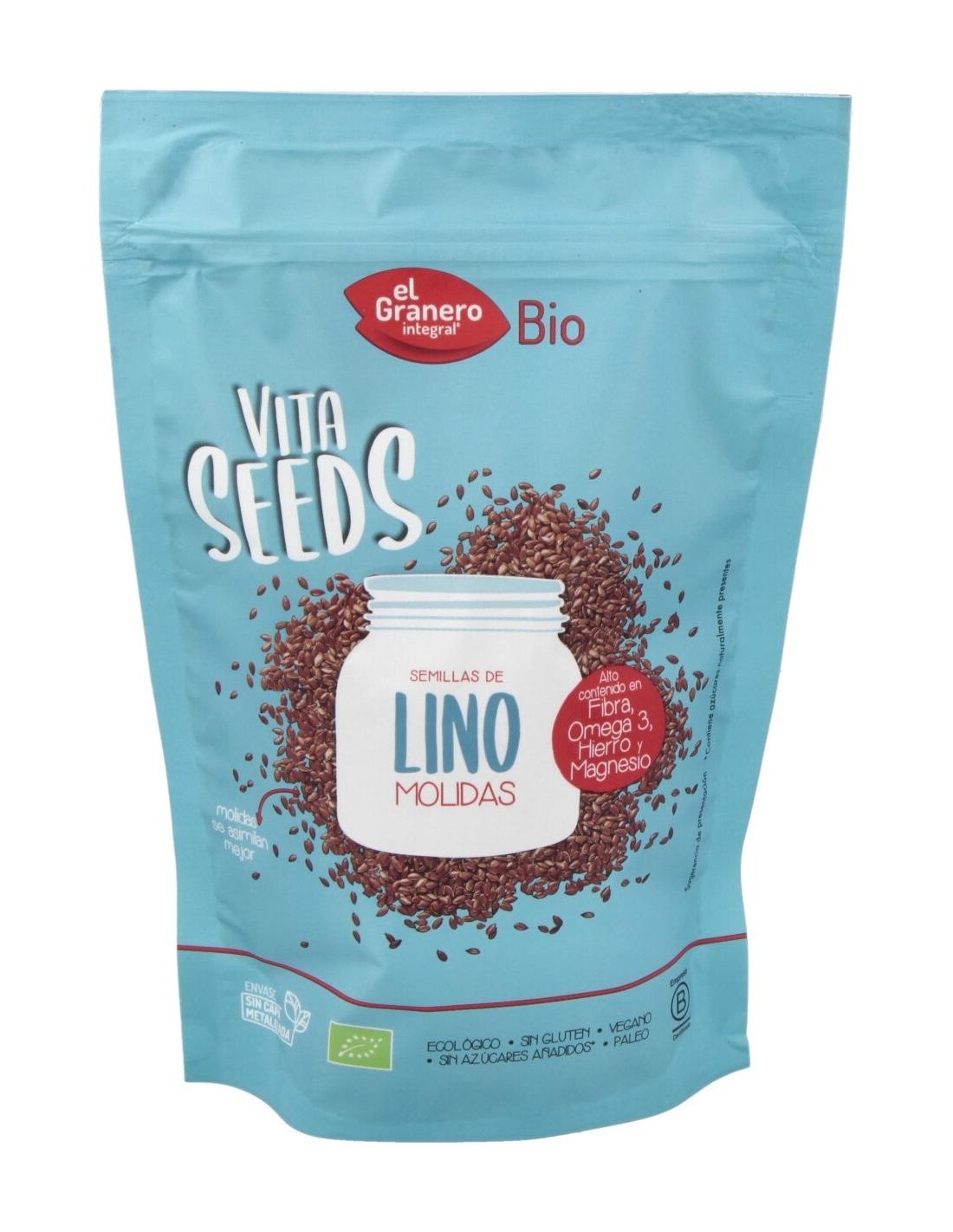 El Vitaseeds Lino Molido 300Gr. Bio de El Granero es una semilla molida ecológica para consumidores conscientes de su alimentación, que aporta fibra y ácidos grasos esenciales gracias a su cultivo biológico certificado.