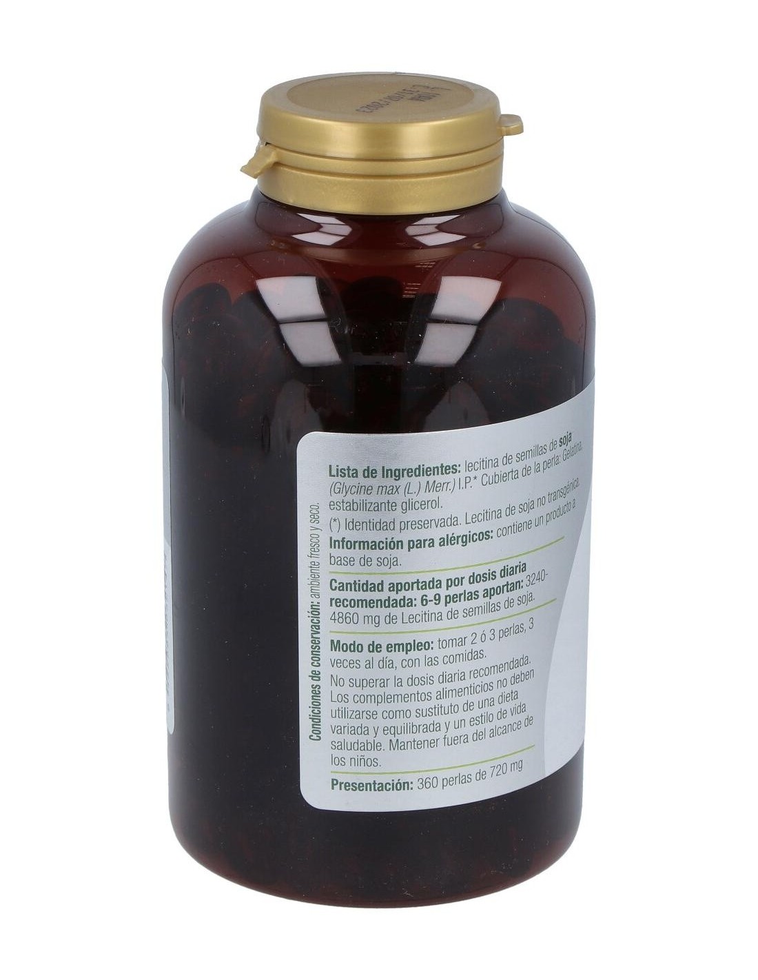 El suplemento está compuesto principalmente por lecitina de soja, un fosfolípido natural reconocido por su papel en la estructura celular. Su diseño en perlas permite una administración cómoda y práctica, adecuada para quienes buscan complementar su dieta con ingredientes de origen vegetal.