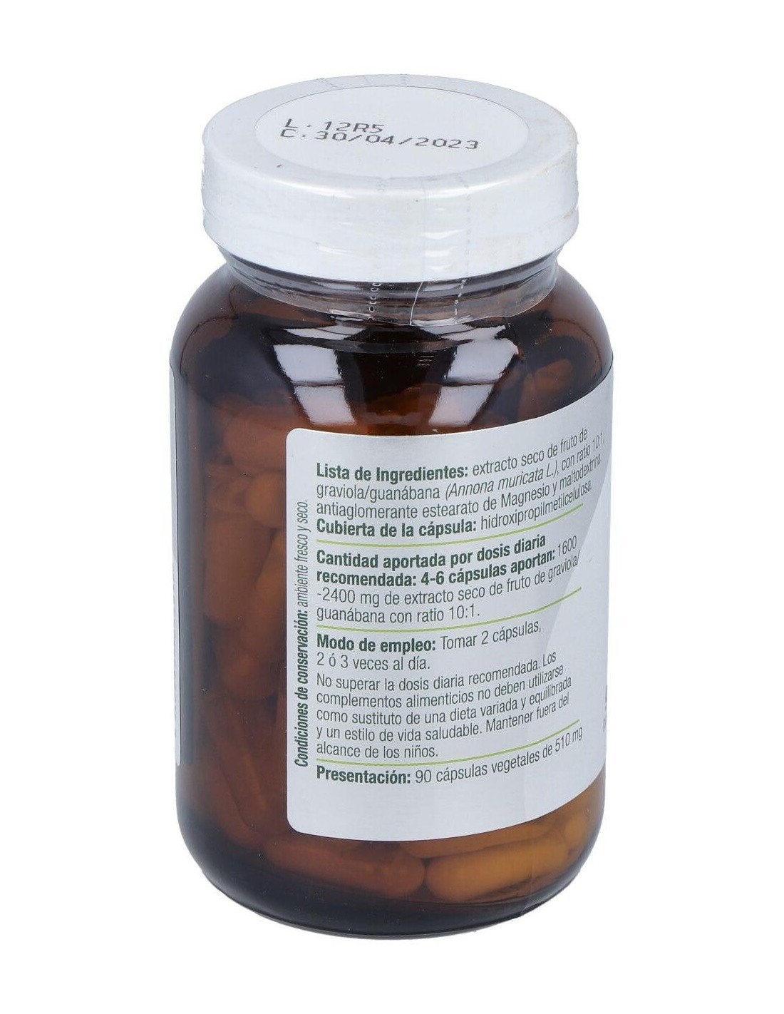 La Graviola es rica en acetogeninas anonáceas, y las hojas se usan en el tratamiento de ciertos tipos de cáncer. En los últimos años se ha extendido ampliamente el uso del extracto de graviola por sus supuestas propiedades antitumorales, que ayudan a combatir distintos tipos de cáncer. Diversos estudios apoyan los efectos anticancerígenos de la anonacina, el compuesto activo de la graviola. Composición:400 mg de extracto seco de fruto de graviola/guanabana (Annona muricata L.) con ratio 10:1. Modo de empleo:Tomar 2 cápsulas de 2 a 3 veces al día antes de las comidas. Presentación:Bote de 90 cápsulas.