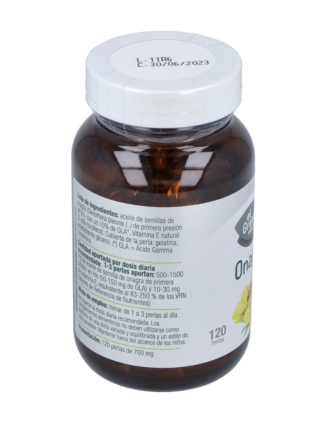 - Cada perla contiene aceite de onagra, fuente natural de ácidos grasos omega-6, que contribuyen al mantenimiento de funciones corporales normales.