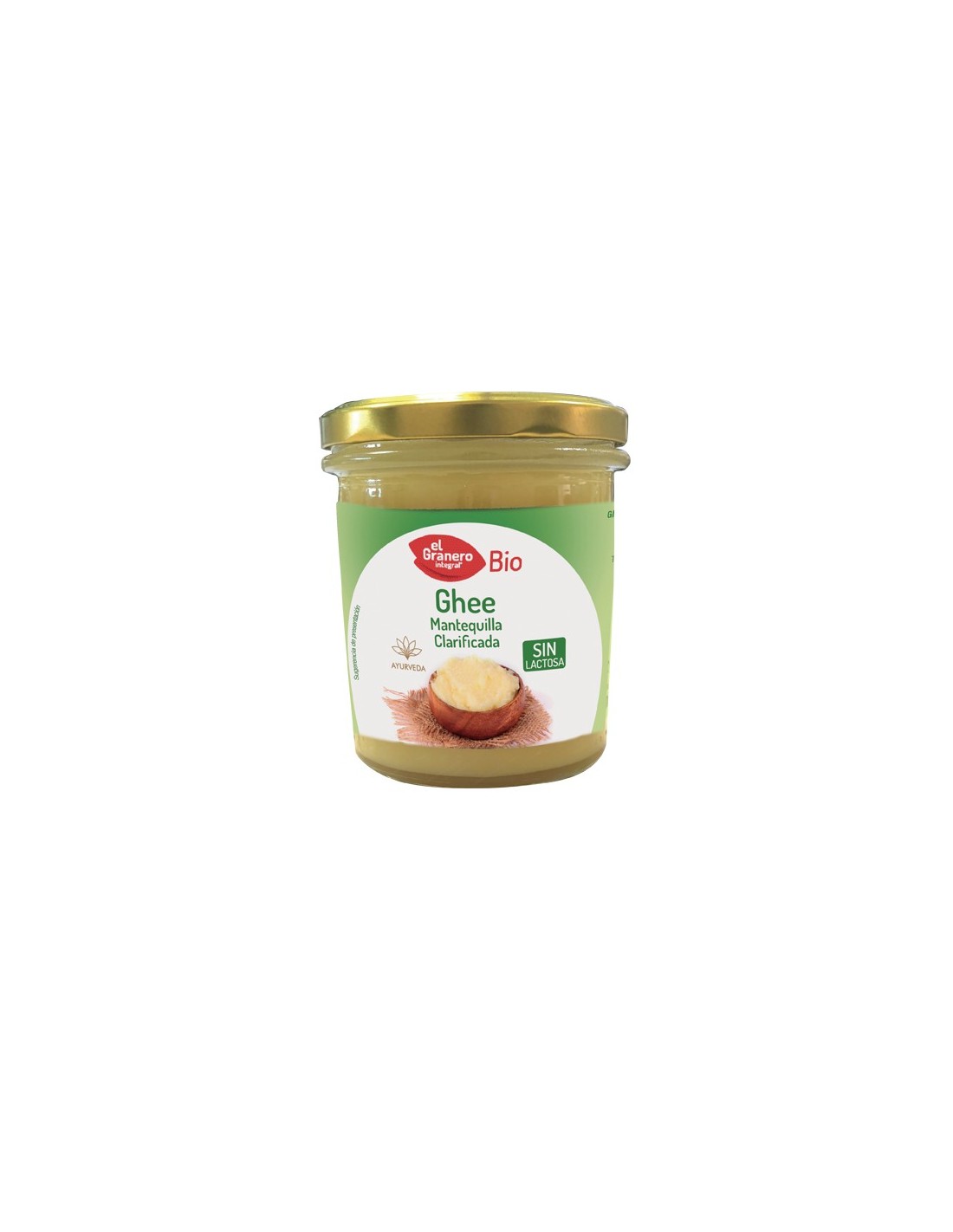La mantequilla Ghee se ha obtenido eliminando de la mantequilla, el agua, las proteínas y los azúcares, quedando la parte grasa. Esta es calentada durante un tiempo prolongado obteniendo un sabor ahumado que recuerda a las nueces. No necesita mantenerse en la nevera, pero sí es aconsejable conservarlo en un espacio resguardado de la luz.Ingredientes:Mantequilla clarificada*. (*)=De cultivo ecológico.Valor nutricional por 100 gramos: